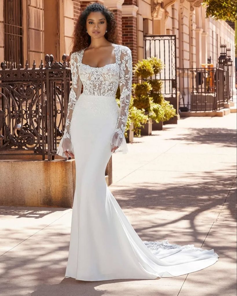 What makes this new wave compelling is its versatility. Whether you’re planning a historic venue ceremony, a city wedding, or an intimate celebration, sleeves offer depth, confidence, and a sense of timelessness that photographs beautifully years later. Below, we explore standout sleeve-forward bridal looks that define the direction of wedding dresses with sleeves in 2026.