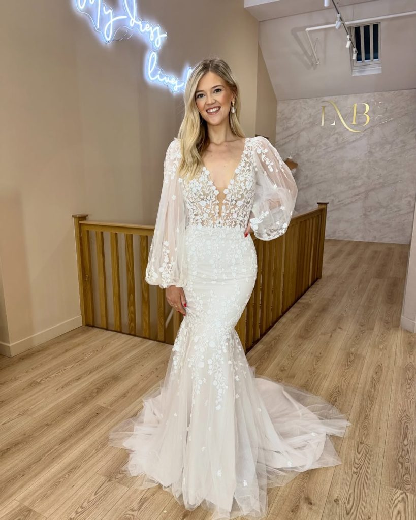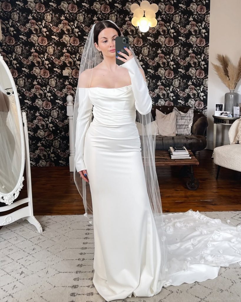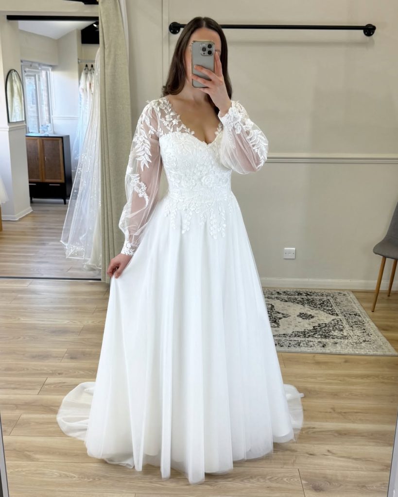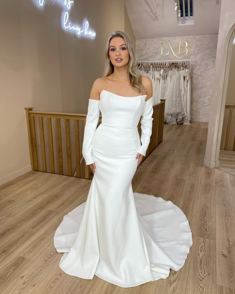 - Wedding dress with fitted long sleeves