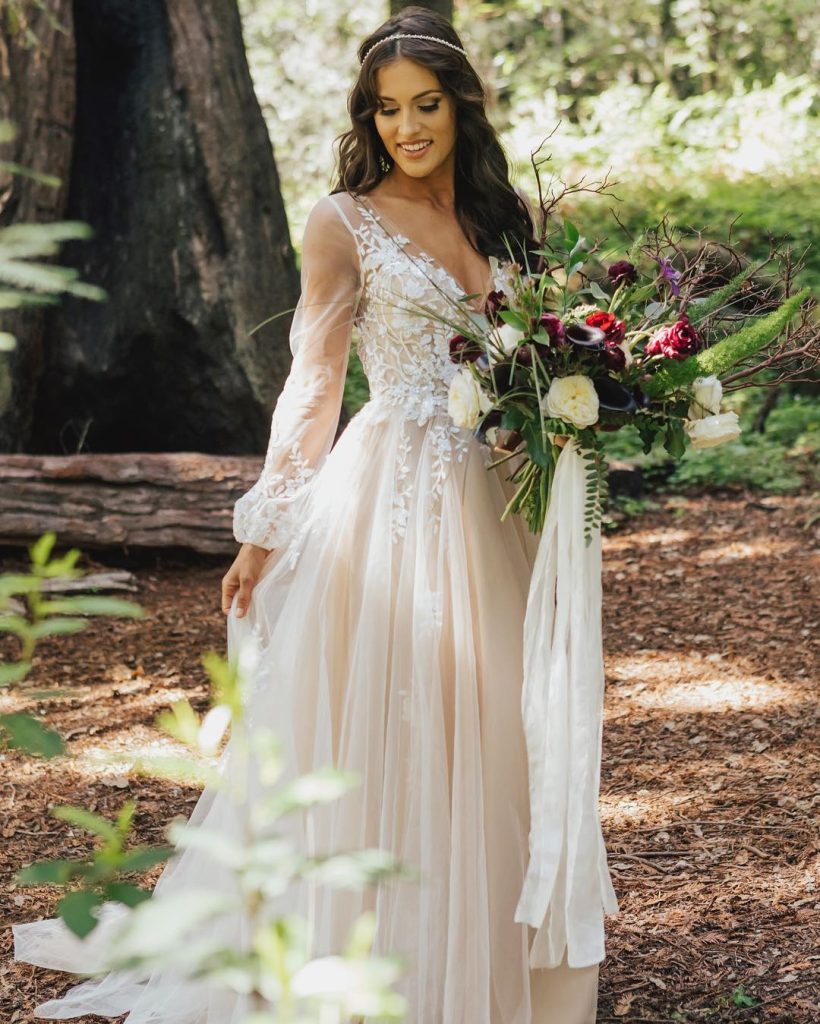 8. Airy Sheer Sleeves With Woodland Romance