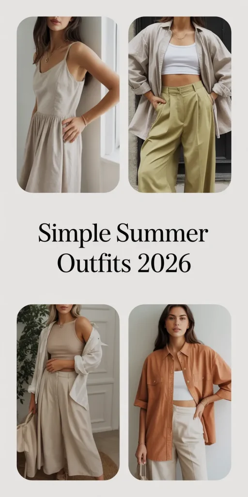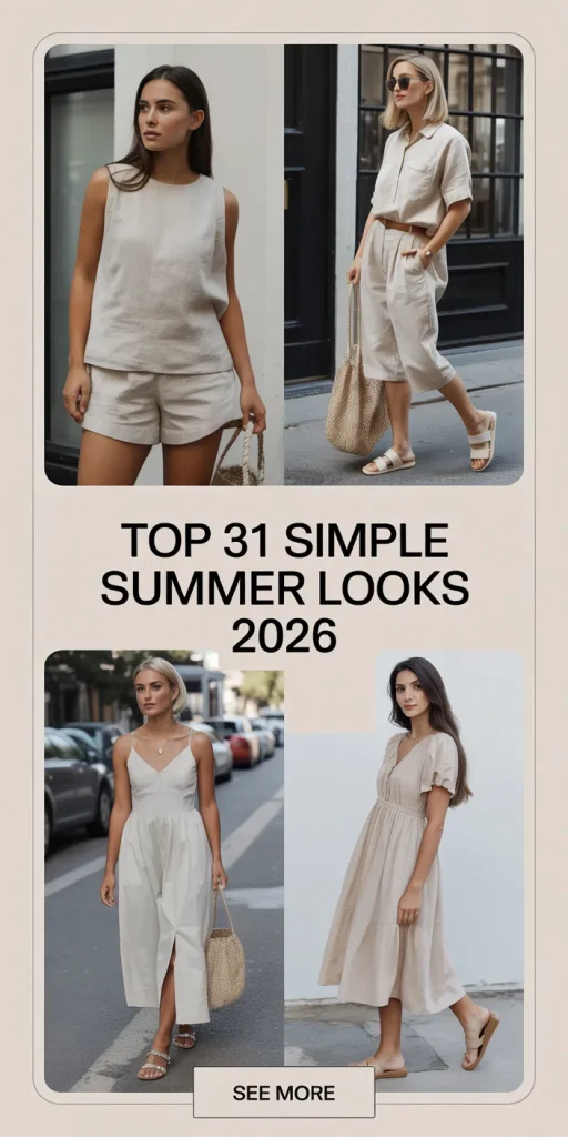 The best simple summer outfits for 2026 encompass a range from comfortable casuals like the ‘Casual City Explorer’ and ‘Weekend Getaway Romper’ to more elevated choices such as the ‘Sophisticated Summer Evening’ look. Key pieces include linen sets, versatile midi dresses, and well-tailored shorts, suitable for various occasions from picnics to office wear.