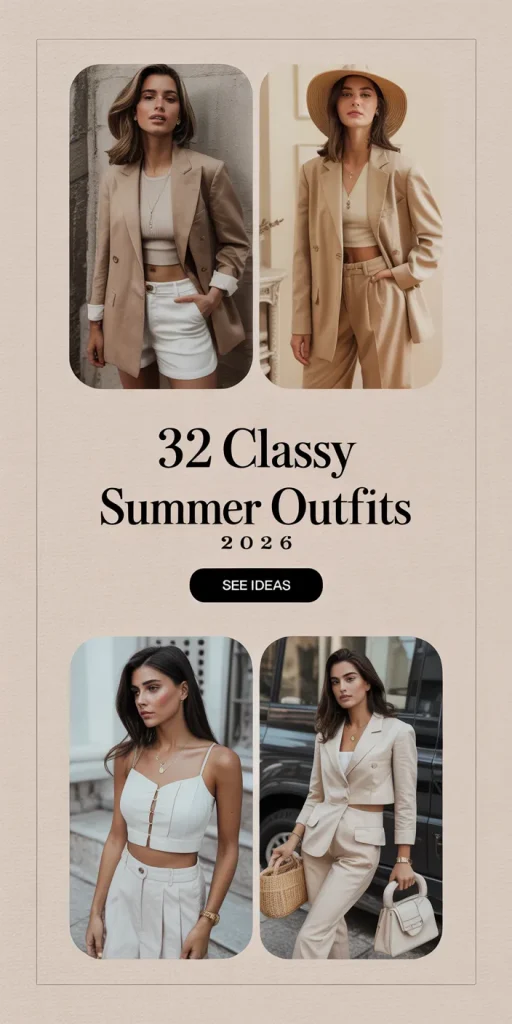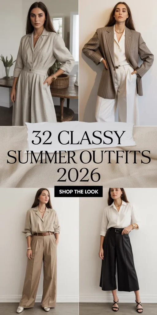 Classy summeoutfits ofts 2026 are all about that effortless balance between elegance and ea—thehe kind of looks that feel polished without ever trying too hard. Think breathable fabrics, clean lines, and timeless silhouettes updated with just the right touch of modern detail. Whether it’s a tailored linen set, a flowing midi dress, or elevated basics styled with intention, the focus is on confidence, comfort, and quiet sophistication.