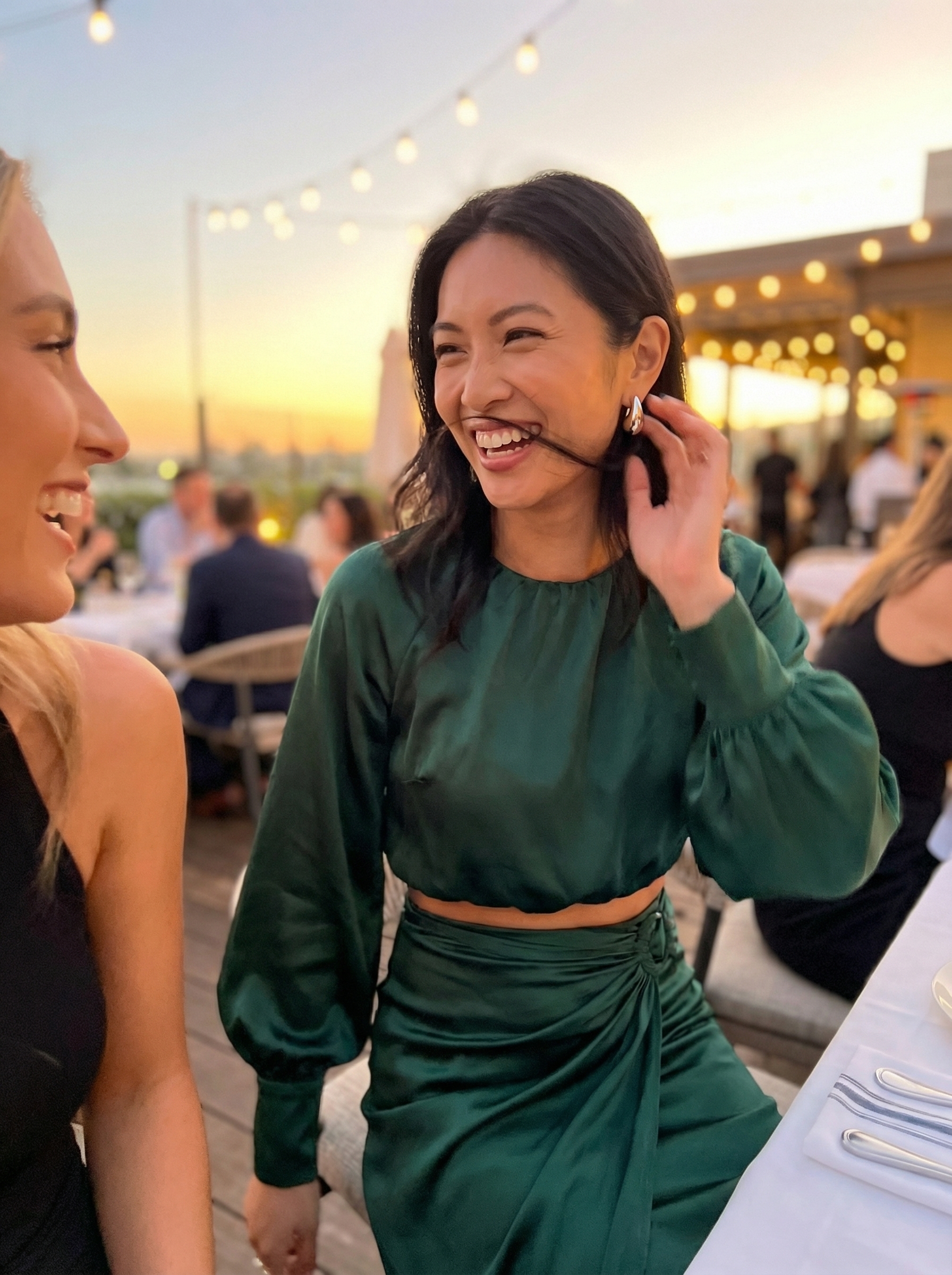 Elegant Alfresco DinnerView & Save → | $345 $$$ | Tuck into the ski, for the silklk camisole felt luxurio, and double-faceded silk charmeuse drapeexquisitely.y, | Check sizing before buying | Alfresco Dining, Date Night, Summer Gala |
