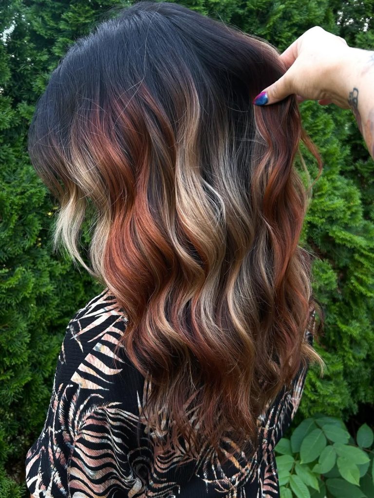 4. Copper-Caramel Balayage with High-Contrast Glow