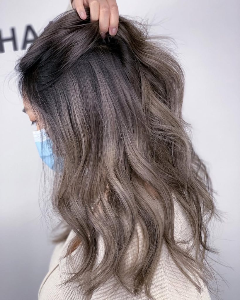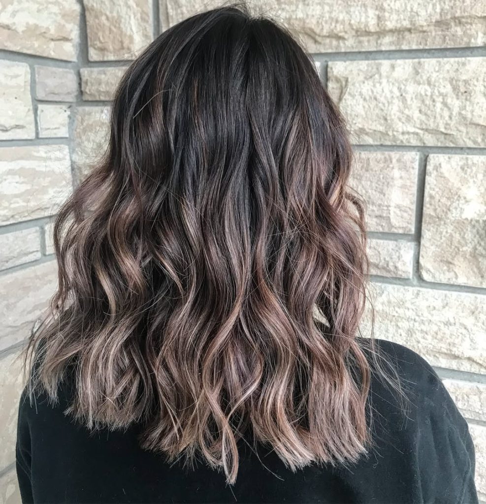 21. Smoky Ash Brunette Balayage with Soft Waves