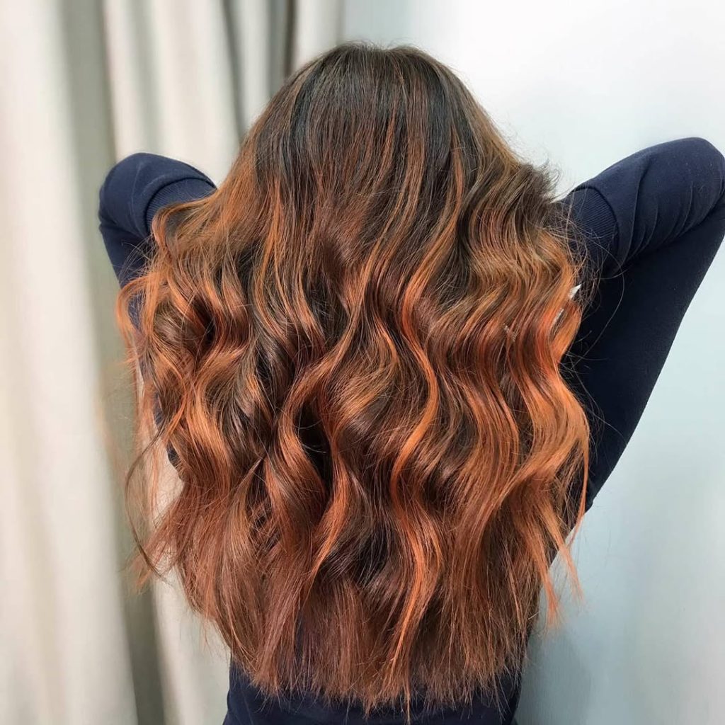 This type of balayage attracts attention in a sophisticated manner. Deep brown hair, infused with red tones, creates warmth that feels vibrant yet wearable. The flowing Wavy finish enhances the depth, almost like each strand has its glow. For Summer brunettes who want something bold but still elegant, this blend of brown and Red is such a beautiful middle ground—rich, dimensional, and full of life.