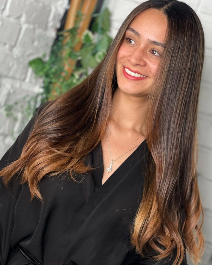 Sometimes the most beautiful transformations are the quiet ones. This Natural balayage gently lifts dark brown hair with soft, light brown and subtle blonde accents that almost look sun-kissed. The result is airy, dimensional, and incredibly wearable. It enhances the natural beauty of the hair, giving it a healthy, luminous finish that feels effortless.