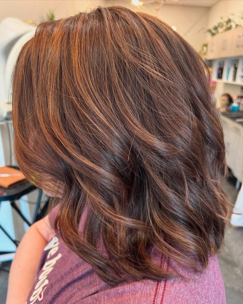 This color works wonderfully for women who want warmth without going fully red. It suits medium to long hair and looks best when styled with movement, allowing the highlights to catch the light. It’s a wonderful seasonal choice that still feels timeless and versatile.