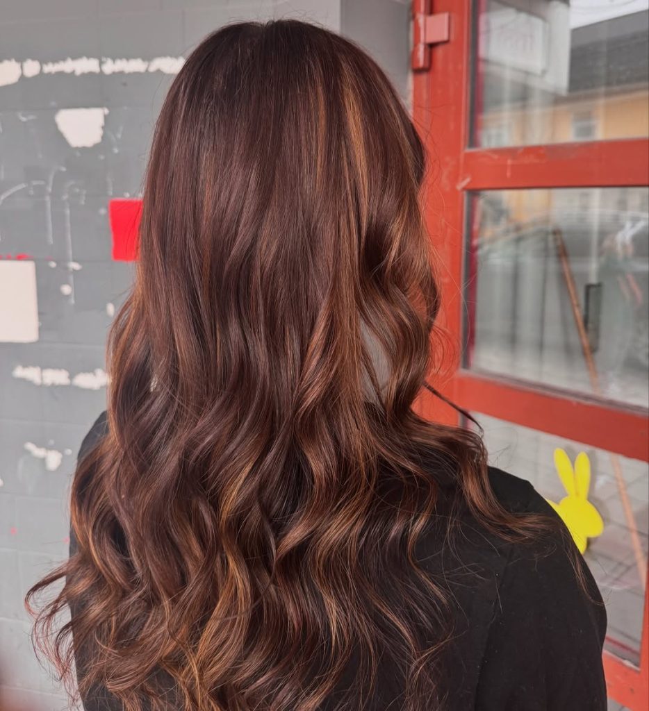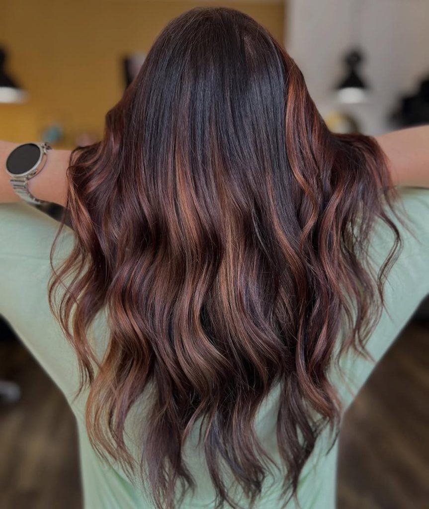This color is ideal if you want depth without obvious highlights. It works especially well on medium- to long-length hair and complements wavy or curly textures beautifully. The reddish warmth adds life to the hair without requiring frequent maintenance, making it a wonderful option if you prefer rich color that grows out gracefully.