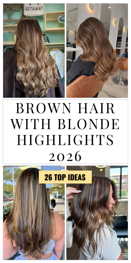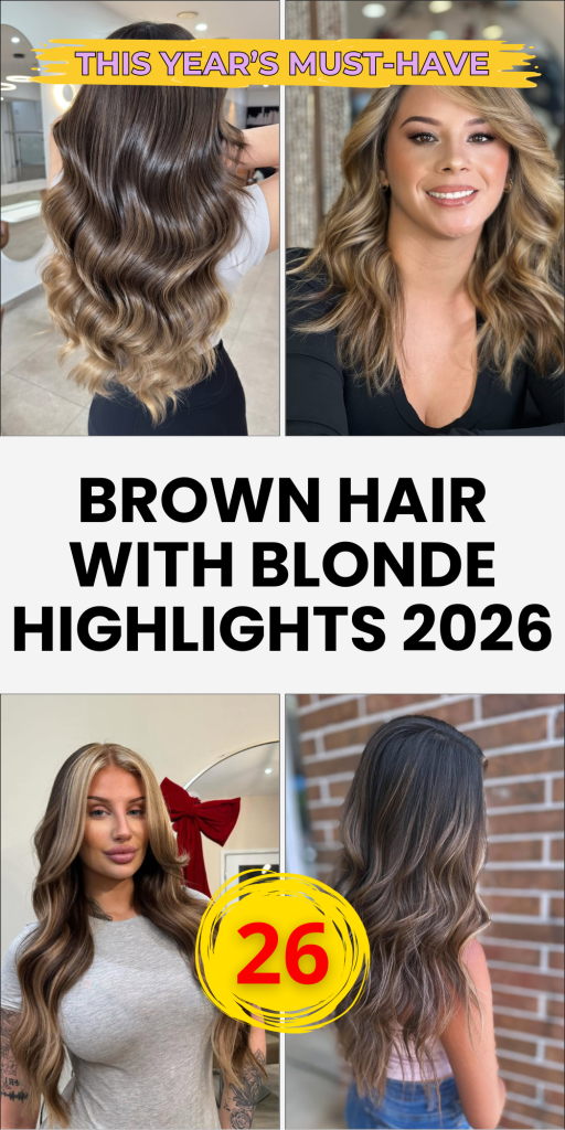 Brown hair with blonde highlights continues to be one of the most flattering and versatile color trends for 2026. It’s the perfect balance between depth and brightness—rich brown tones create a natural base, while blonde highlights add light, movement, and a youthful glow. This combination works beautifully across different hair lengths, textures, and ages, making it a timeless choice that still feels modern. From soft face-framing pieces to blended balayage and subtle ribbons of blonde, these looks are designed to enhance natural beauty rather than overpower it.