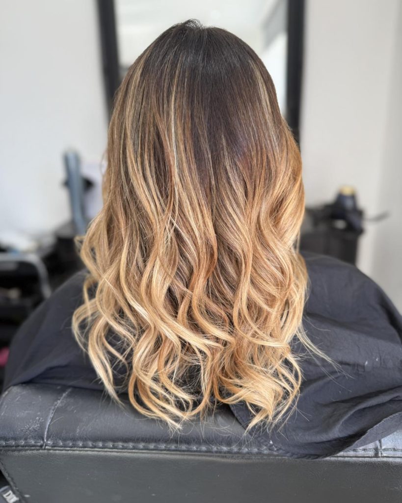 There’s something undeniably luxurious about this smooth transition from dark roots to light ends. The gradual fade feels intentional and refined, giving the hair a rich, dimensional look without harsh lines. The waves add softness and depth, making the overall style feel full and beautifully blended.