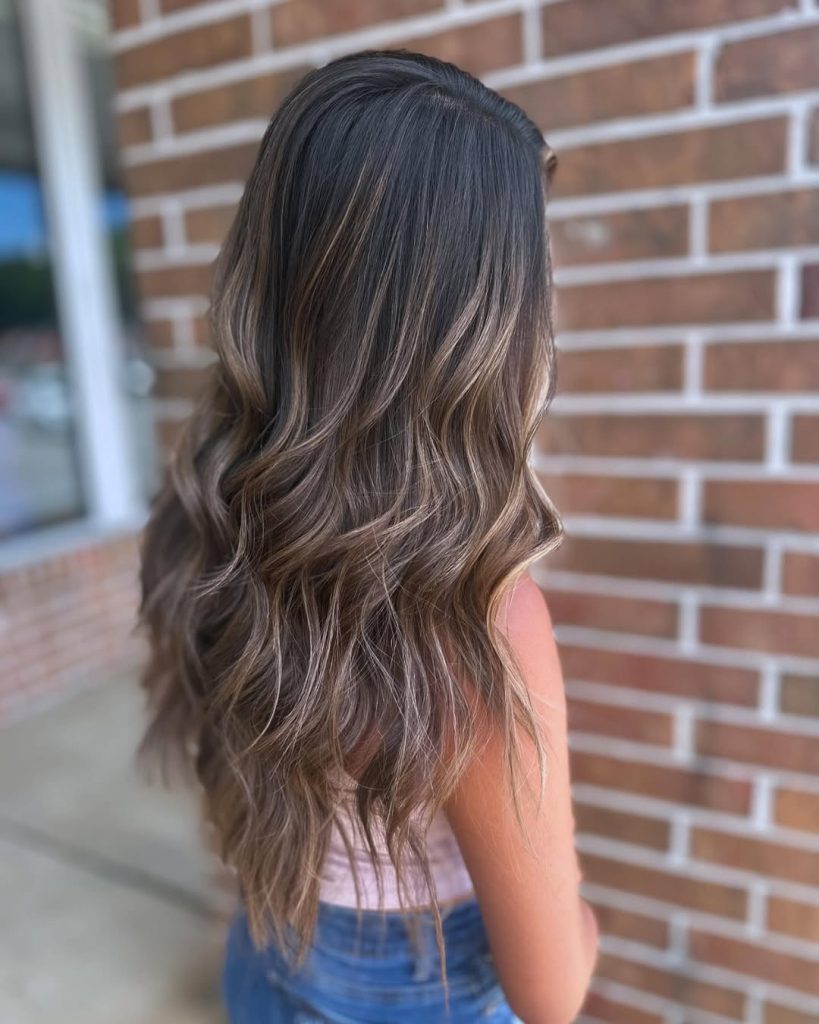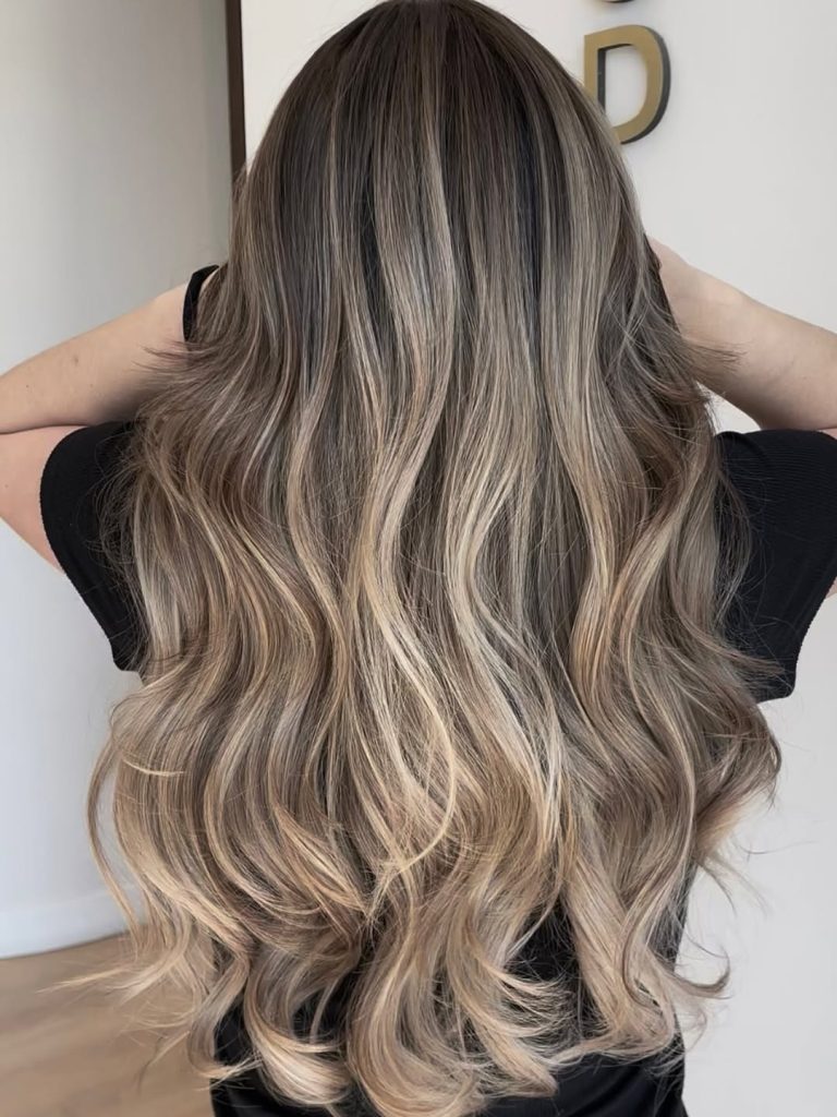 If cooler tones attract you, this color scheme is a great pathway to explore. The balayage technique is flattering and simple to maintain. It is ideal for long hair, which can feel heavy. It works particularly well for wavy hair and is excellent with neutral makeup and minimal, modern clothing.
