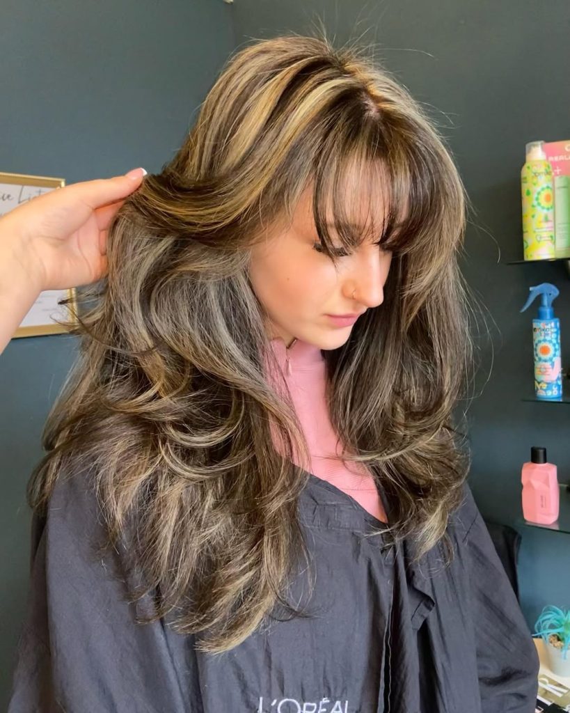 What is special about this cut is how it uses lighter tones. Keeping most of the hair dark while having brightness around the face keeps the look modern and flattering. This look suits straight and wavy hair and is ideal for women who want to highlight their features without going full blonde.