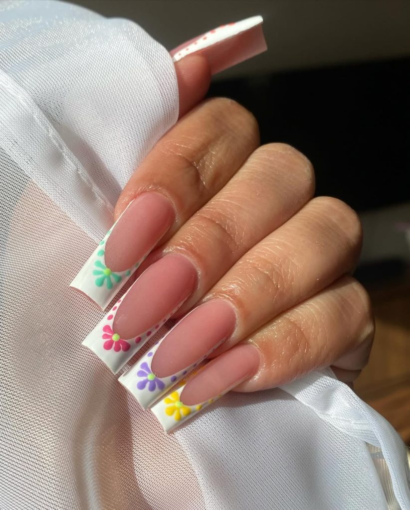 2. Floral Acrylic Coffin Nails with a Cute Spring Twist