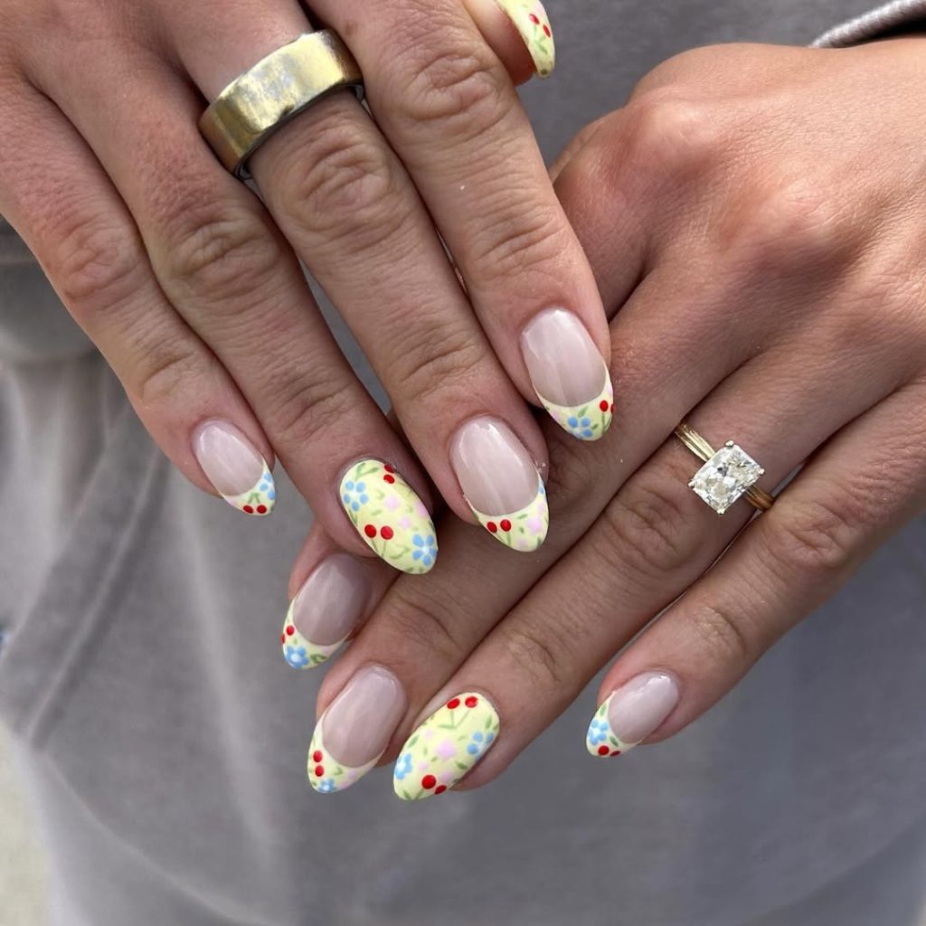 There’s a nostalgic, storybook feel to this manicure. The delicate florals contrasted with the understated French tip look timeless and elegant, like pressed flowers hidden in a favorite journal. It’s serene and graceful, and it is it is for anyone who adores nails that feel personal and well considered.