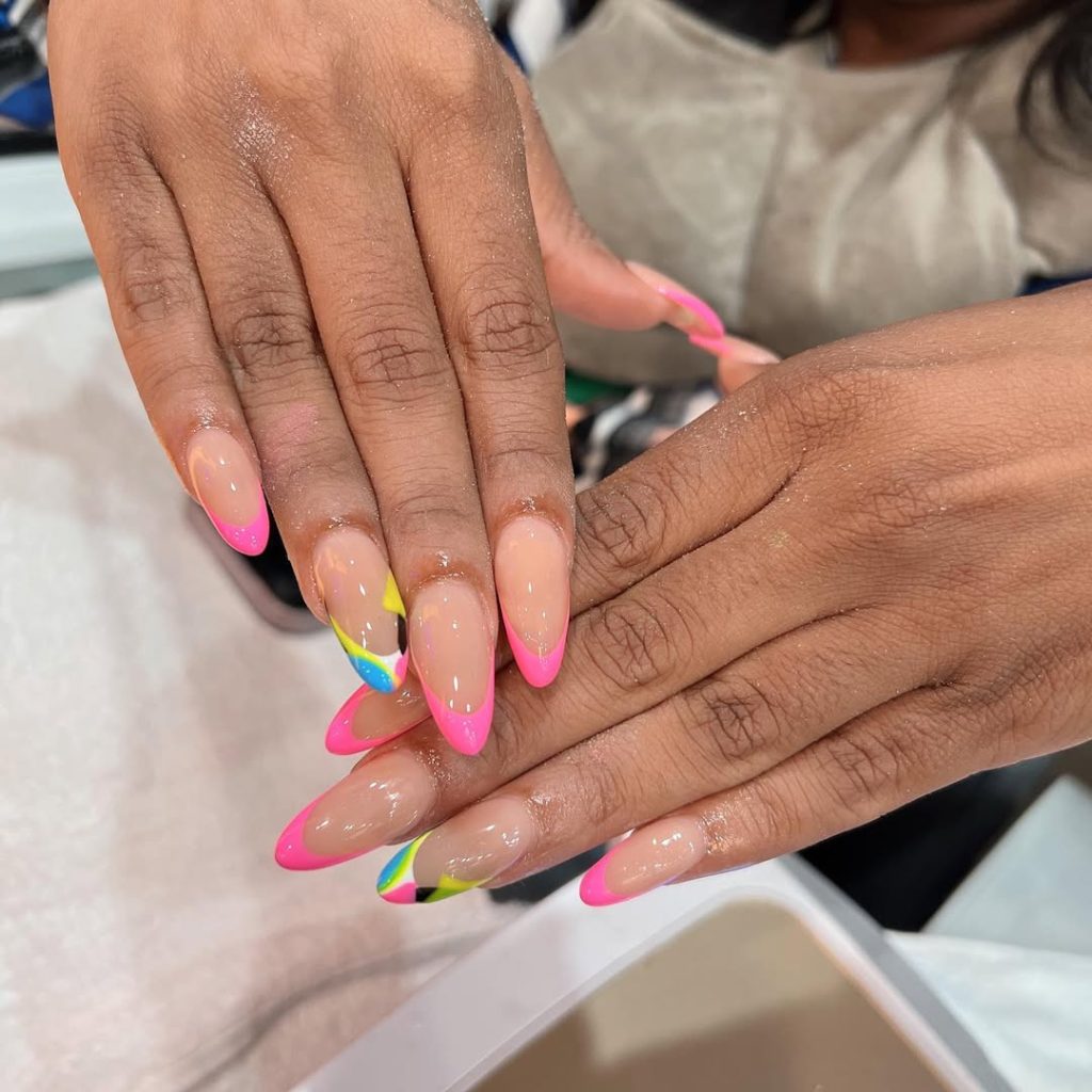 like pure energy on your nails. The bright, neon colors and graphic patterns are engaging and expressive—an unapologetically playful statement. It’s a design meant to embrace color and creativity—great for those spring days when you’re in the mood to let your nails do some talking and show off your personality.