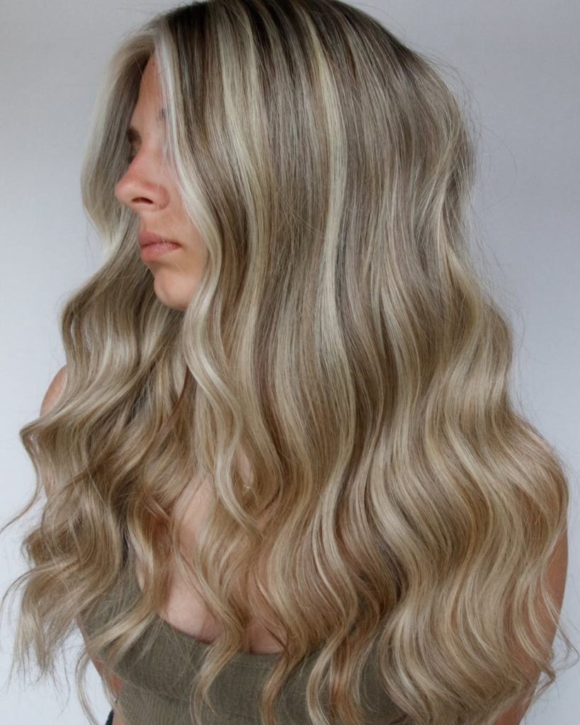 The style is an excellent option for women who prefer cooler tones and low-maintenance color. Ash shades paired with subtle highlights help blur regrowth and keep the look soft over time. It works well on straight and wavy hair and looks especially appealing when styled loosely. If you want lowlights that add depth without heaviness, this style is a smart choice.
