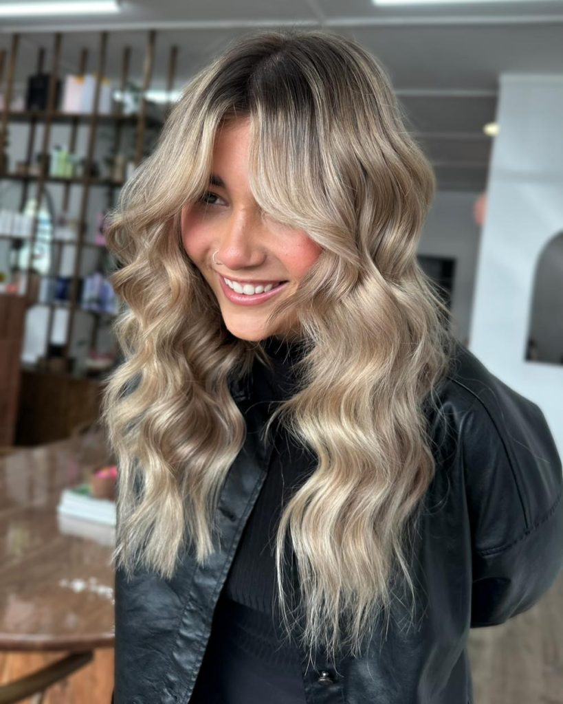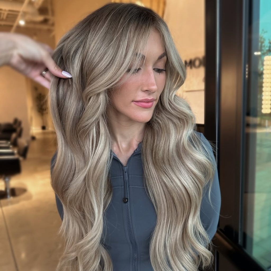 This ashy dirty blonde look feels calm, modern, and incredibly chic. The cooler tones give the hair a refined edge, while soft waves keep it from feeling too severe. There’s a quiet confidence here—the kind that doesn’t need attention but always gets noticed. The blend of ash and golden undertones creates a balanced color that feels sophisticated and grown-up.