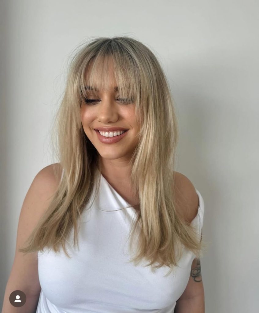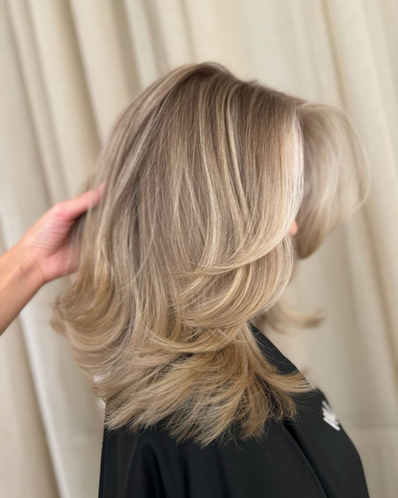 There’s a lightness to this look that feels refreshing the moment you see it. The layers flow effortlessly, giving the hair a soft, airy quality that feels modern and relaxed. The dirty blonde shade looks sun-kissed rather than salon-perfect, which is precisely what makes it so appealing. It has that lived-in beauty that feels authentic, like hair that simply falls into place without effort.