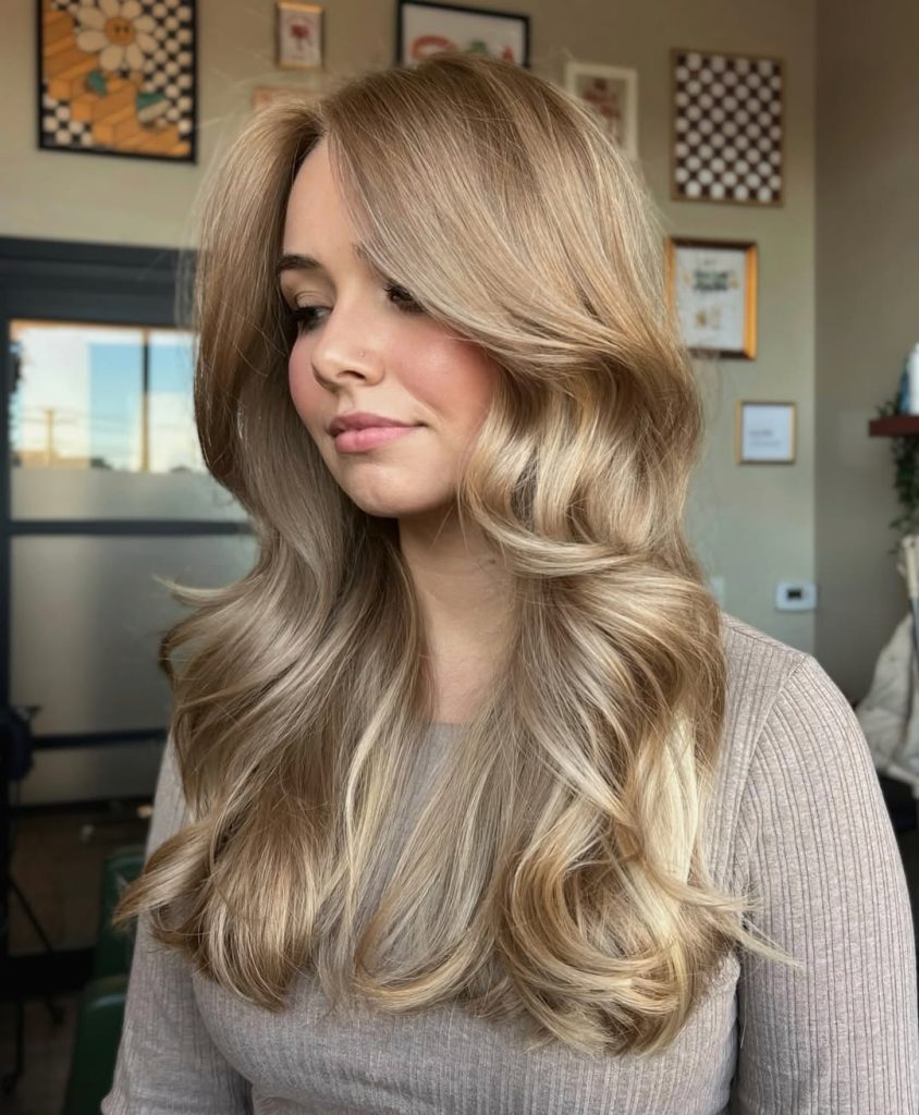 There’s a quiet confidence in this look that feels very empowering. The soft waves create movement and softness, while the lighter framing pieces subtly draw attention to the face. The dirty blonde tone feels warm and approachable, giving the entire style a friendly, effortless charm. It’s the kind of hair that makes you feel put-together even on your most casual days.