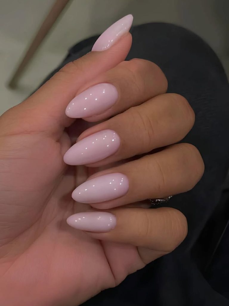 This is elegance in its purest form. A soft pink shade with a high-gloss finish creates a clean, healthy, and effortlessly beautiful look. There’s no extra art or sparkle here, just smooth, flawless color that lets the shape and shine do all the talking.