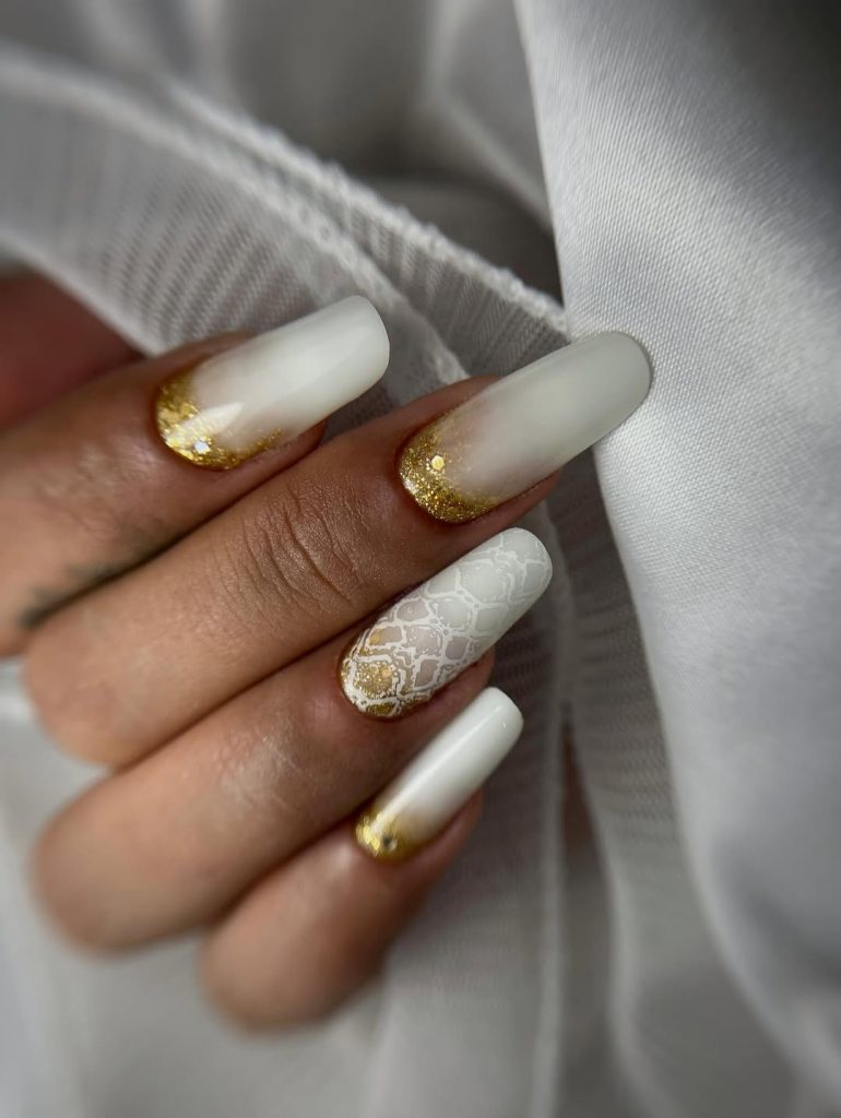 This look is ideal if you want something special without going bold in color. Almond nails keep the design graceful, and the gold accents elevate the overall feel. It’s a beautiful example of classy 2026 almond ideas that combine art, elegance, and effortless wearability.