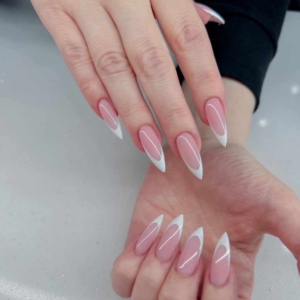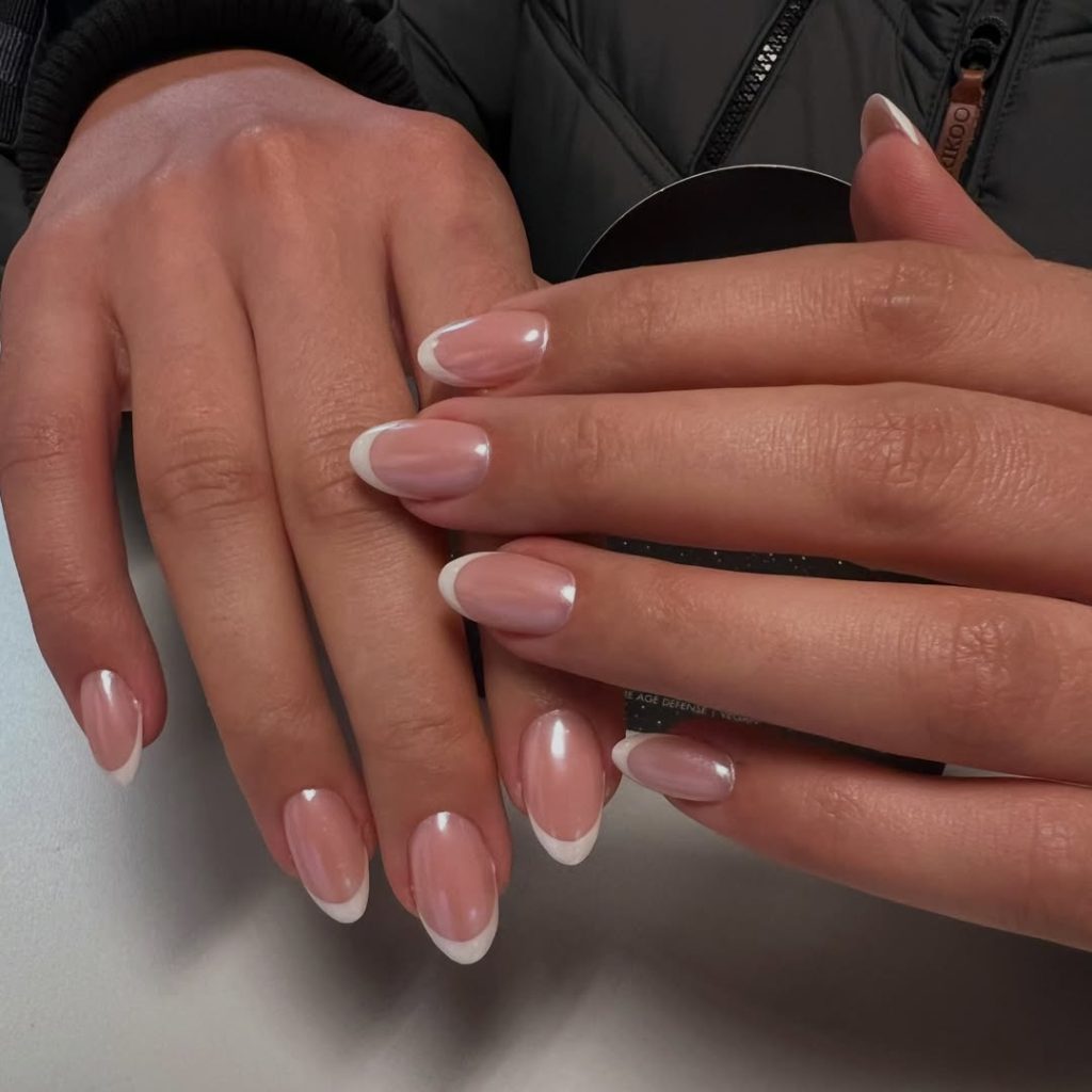 This look is pure elegance with a familiar, comforting feel. The soft pink base paired with crisp white French tips feels timeless, feminine, and beautifully put together. It’s the kind of manicure that instantly makes your hands look well cared for, regardless of what you’re wearing. Calm, polished, and quietly confident, it speaks to women who appreciate classic beauty without needing anything flashy.