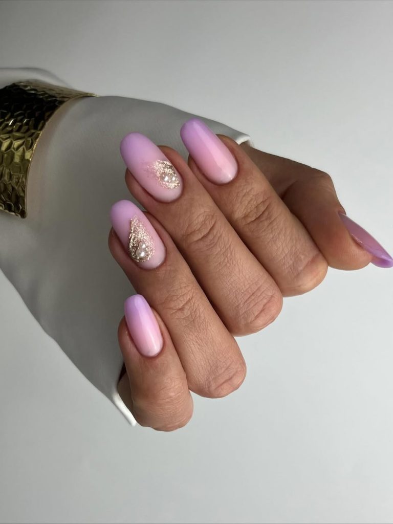 This manicure feels delicate, feminine, and quietly glamorous. The soft pink shade is flattering and fresh, while the gold accent adds just the right amount of shine. It’s romantic without being too sweet and elegant without feeling stiff.