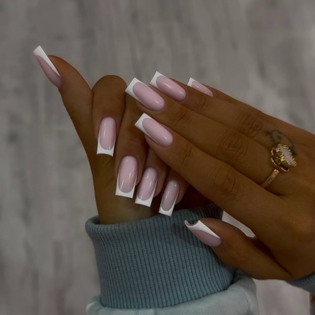 These nails feel polished, neat, and effortlessly elegant. The soft pink base creates a clean foundation, while the white square tips add structure and balance. It’s simple, timeless, and incredibly flattering, especially when paired with classic jewelry and neutral outfits.