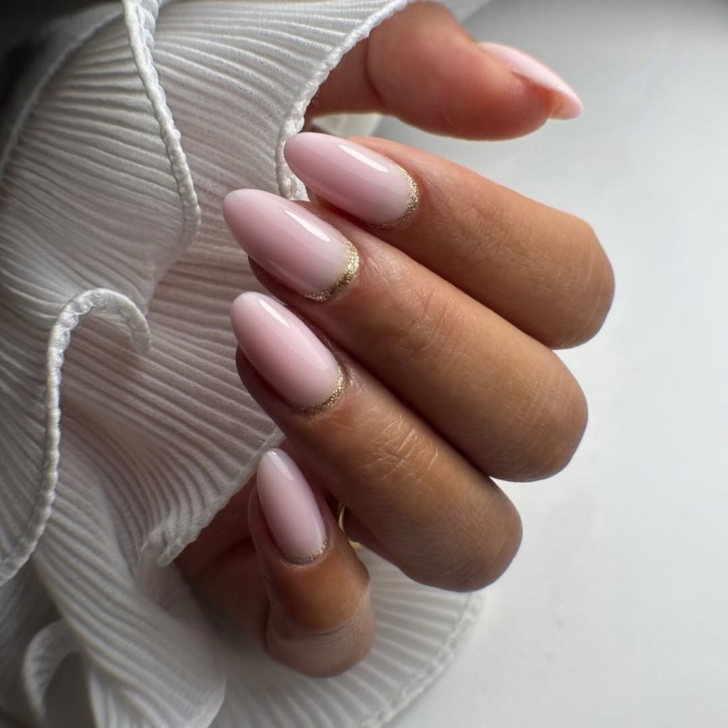 9. Blush Pink Almond Nails with Gold Cuticle Detail