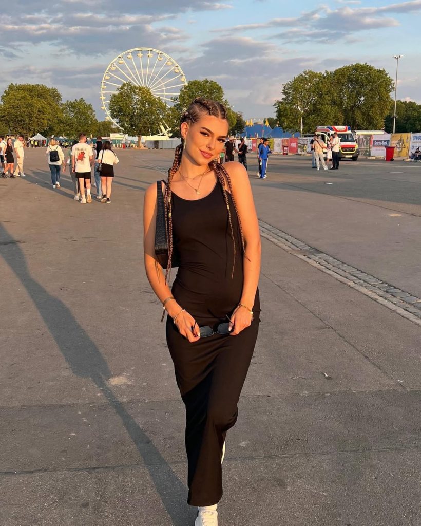 This look brings a calm, confident energy—simple, striking, and so naturally cool. The fitted black maxi feels almost runway-clean, giving a different flavor compared to typical festival outfits. The braids add a playful twist, hinting at EDM and rock influences without taking over the look. It’s understated, but in the best, most elegant way.
