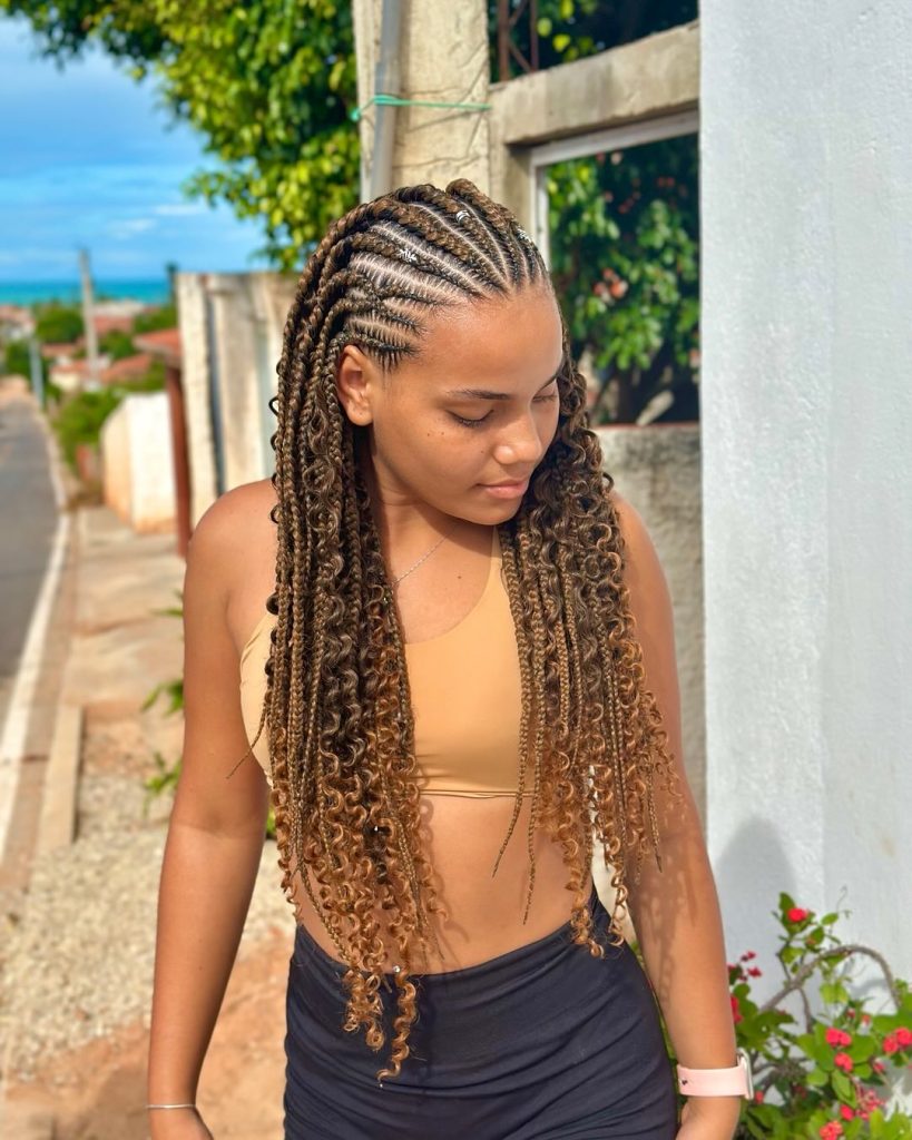 12. Fulani Braids with Caramel-Toned Curls