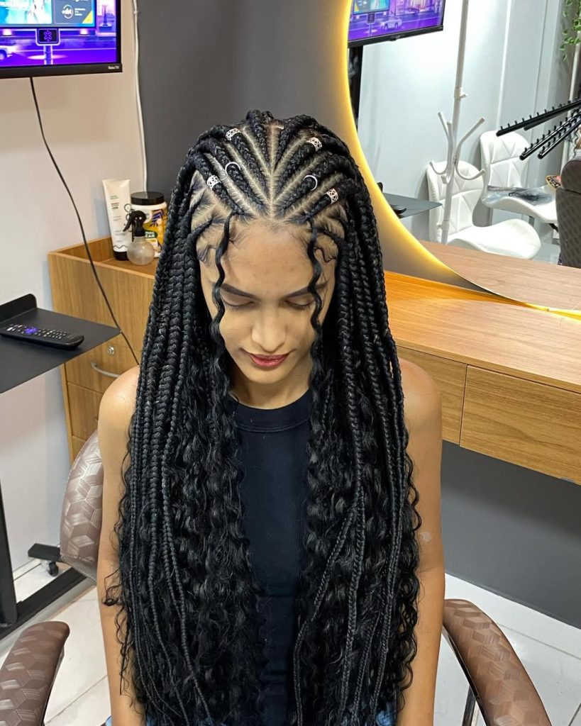 7. Fulani Braids with Curls and Metal Accents