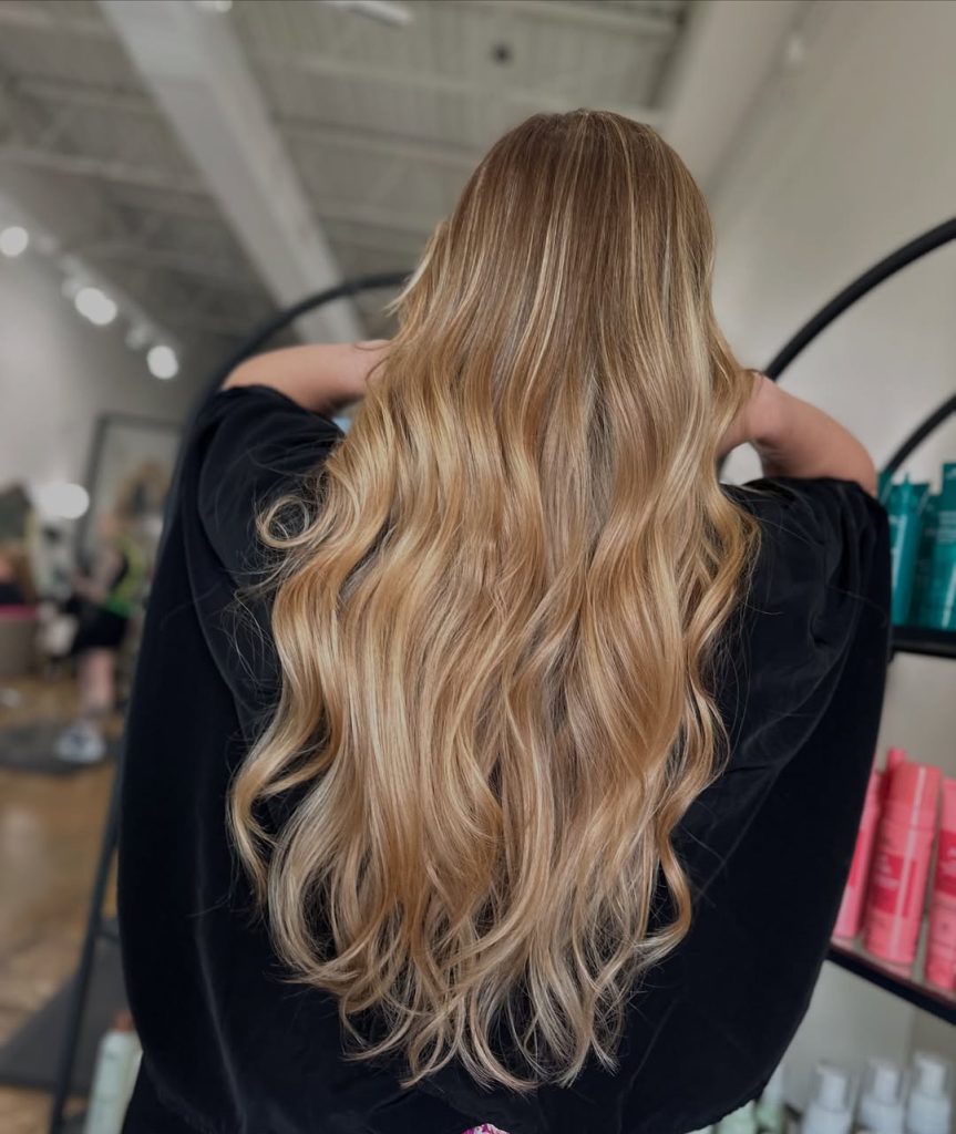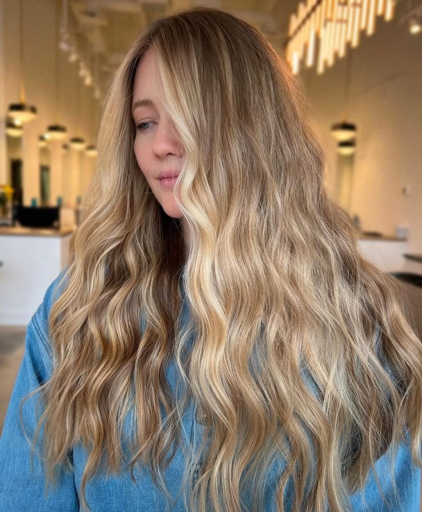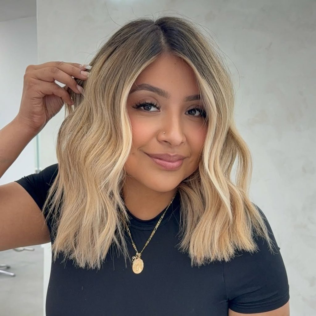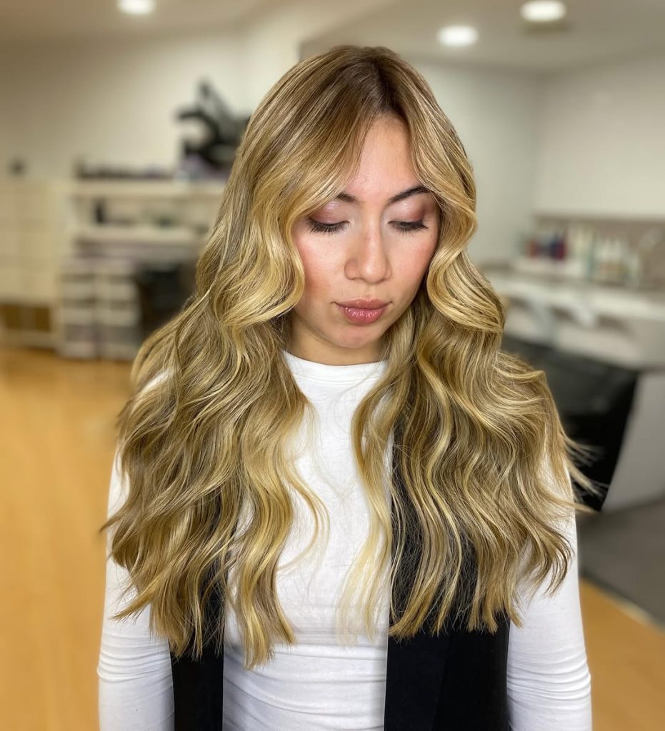 This glamorous golden blonde look shows just how transformative balayage can be. The deeper base melts seamlessly into lighter ends, creating richness and dimension that’s impossible to ignore. The cascading waves add drama and movement, making the whole style feel red-carpet ready. It’s a confident, head-turning look that radiates sophistication while keeping a natural vibe.