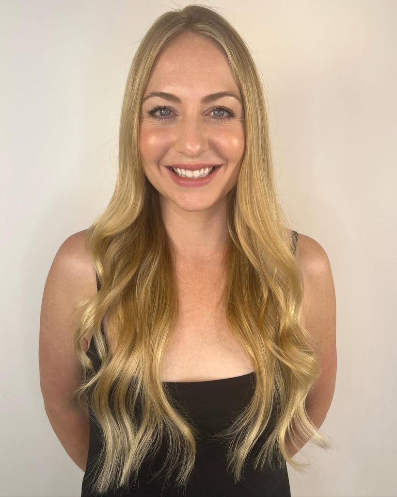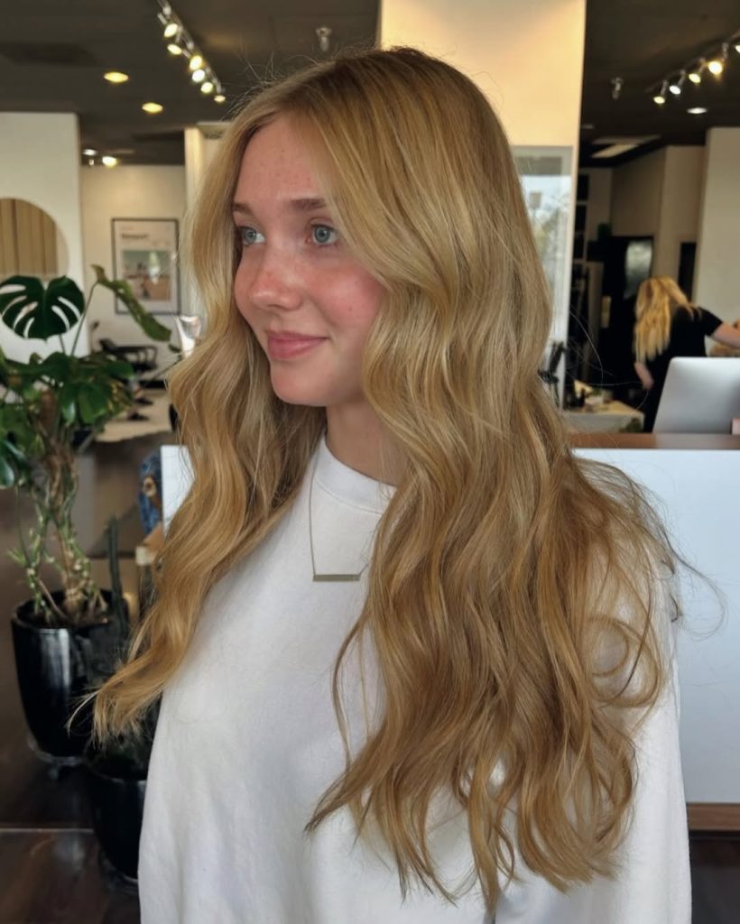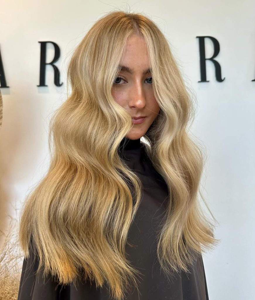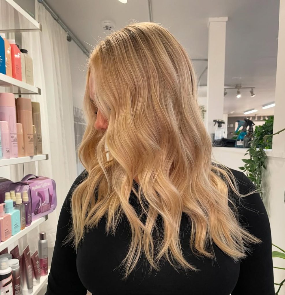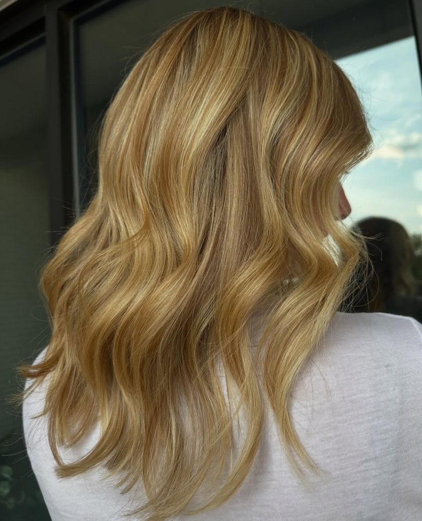 With bright sun-kissed hues, golden blonde gets topped up to an almost radiant level. The waves provide volume and bounce, leaving the hair appetizingly alive-looking in full bloom. It is the kind of style that brings the vibes of an easy-breezy summer while maintaining an air of elegance for all-year wear.