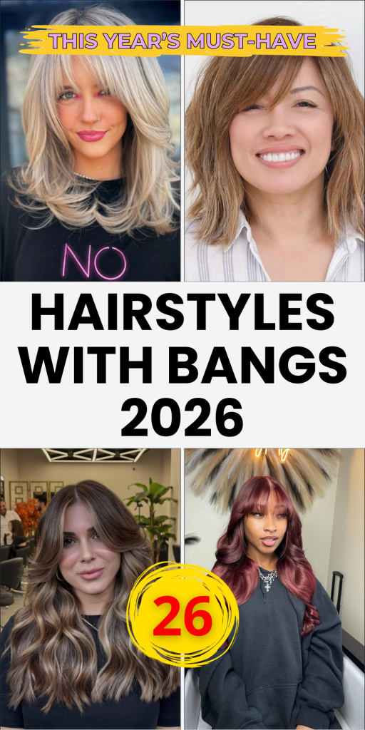 Bangs have a unique way of refreshing a hairstyle without changing who you are. In 2026, hairstyles with bangs for women focus on softness, movement, and effortless elegance. Today’s bangs are lighter, more customizable, and designed to work with natural texture and face shape. From airy curtain bangs to refined side-swept fringe, these styles enhance your features while keeping the look modern, confident, and easy to maintain. This collection of ideas proves that bangs are not about hiding age—they’re about highlighting personality, comfort, and timeless style.