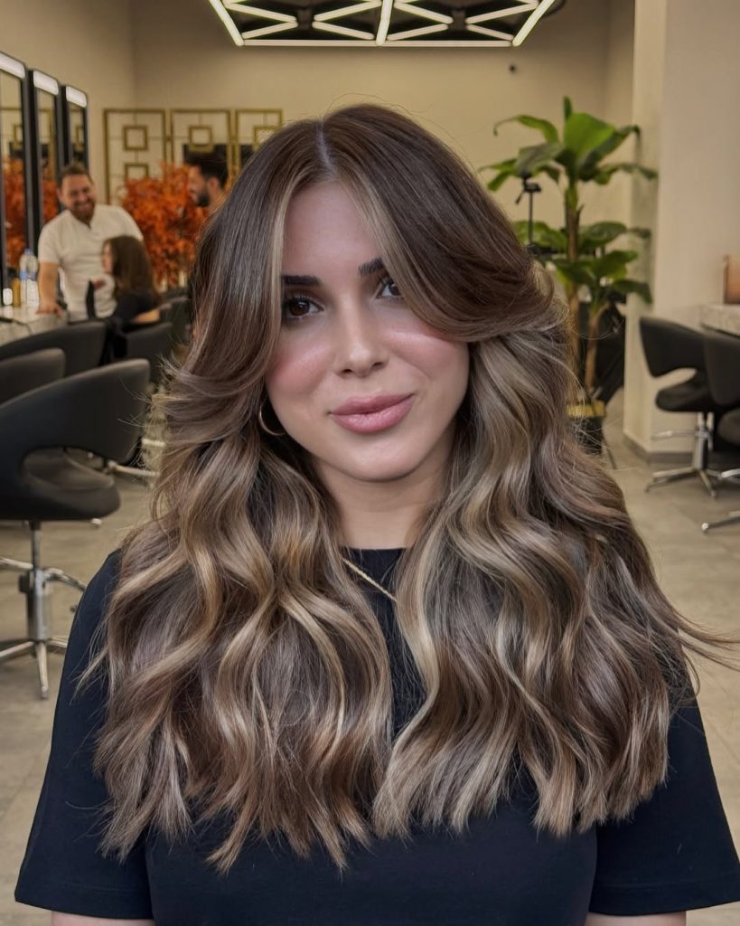 Best suited for long hair or medium length transitioning to long, this look works well on straight or wavy textures. The layers prevent the hair from feeling flat, which is especially flattering for women over 50. A light styling cream and a large round brush help enhance movement, making it a beautiful option for women who love length but still want shape and freshness.