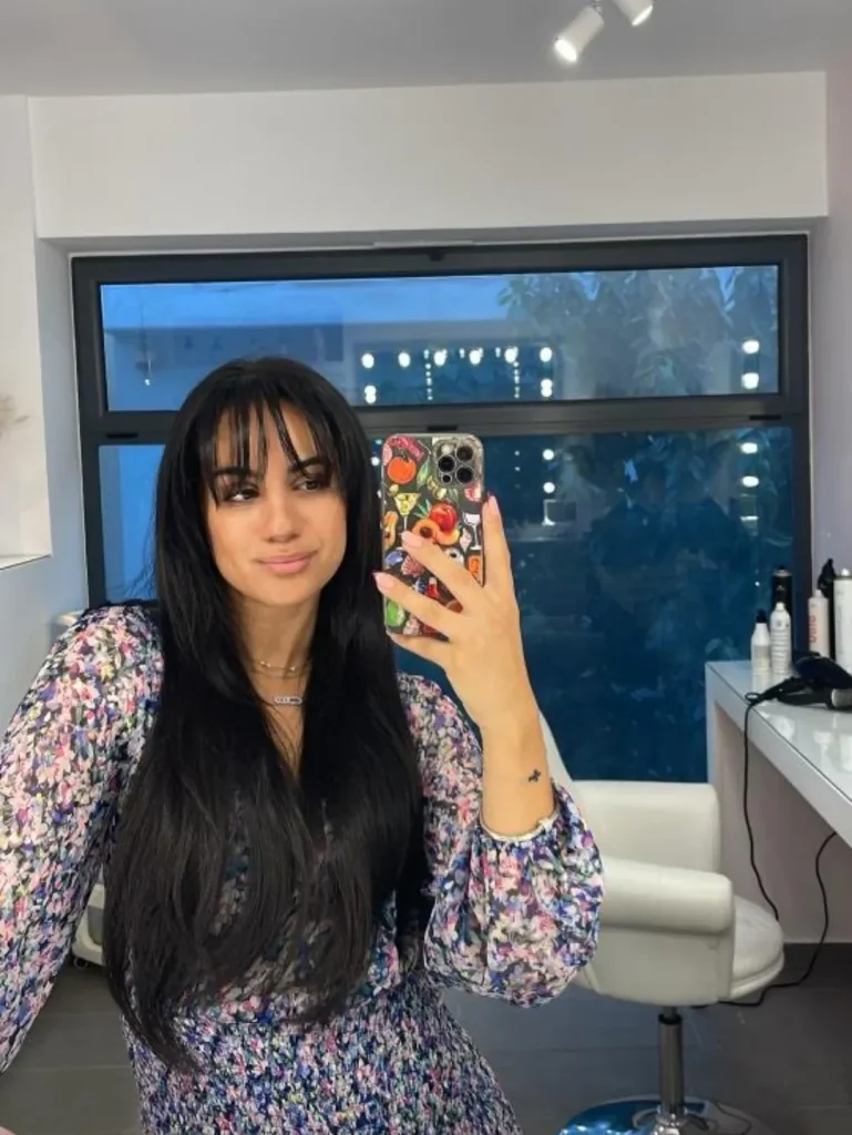 This hairstyle has personality in the best way. The layered length combined with full bangs feels expressive and bold, yet still wearable for everyday life. There’s a confidence to this look—it doesn’t fade into the background. The bangs draw attention to the eyes, while the layers add movement that keeps everything feeling dynamic and alive.