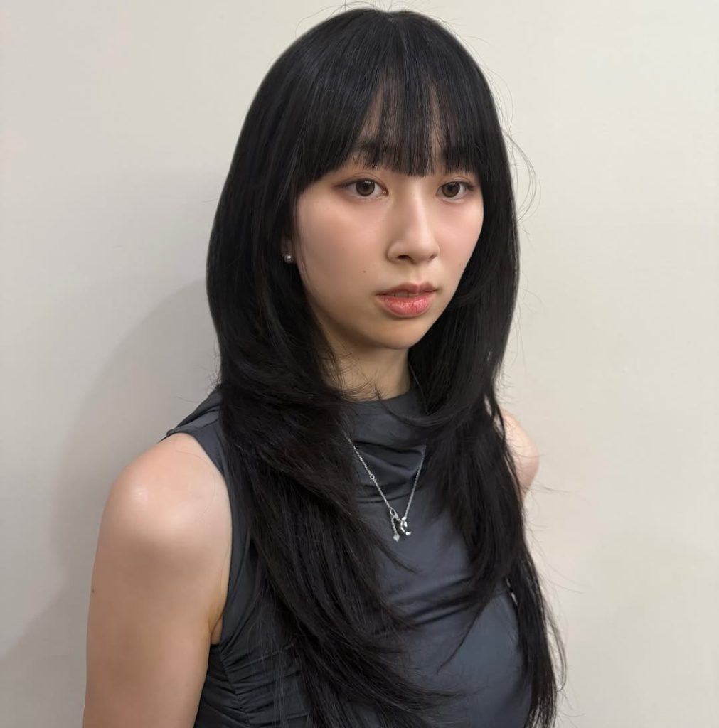 This hairstyle feels romantic in a very grown-up way. The long layers flow effortlessly, while the bangs add a gentle softness that draws attention to the eyes. This hairstyle is feminine without being overly sweet and polished without appearing stiff. There’s a quiet confidence in choosing a long, flowing style like this—it feels expressive, elegant, and completely timeless.