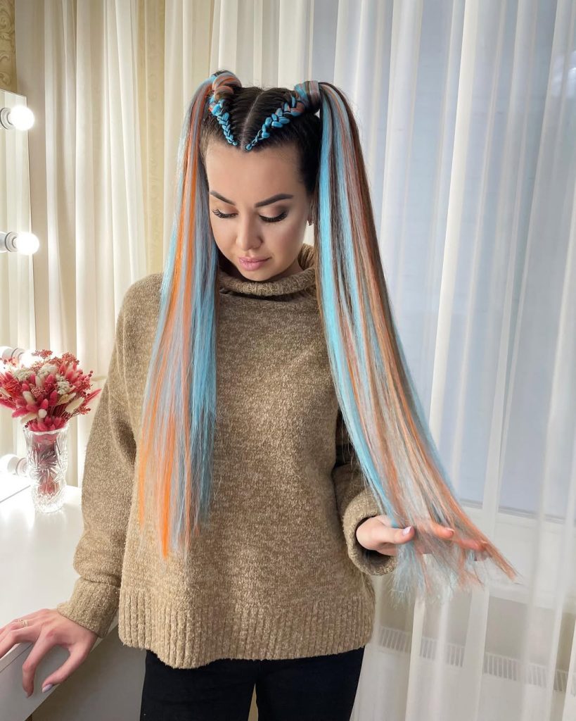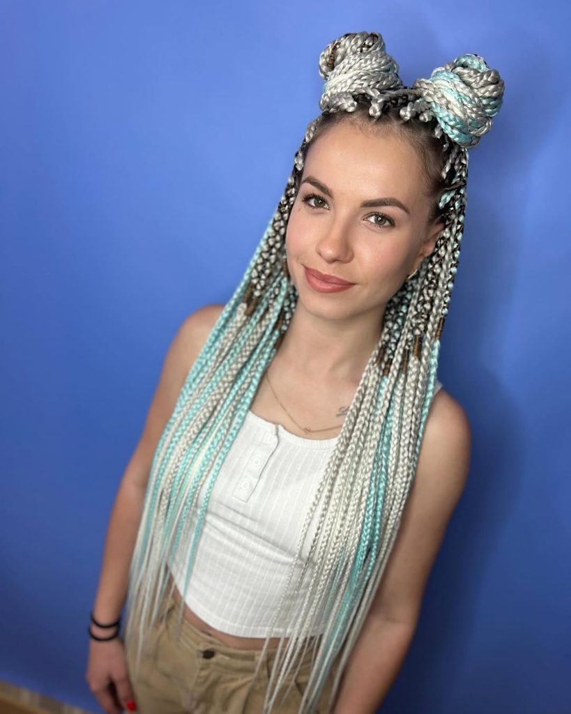 6. Playful Double Braided Buns with Long Length