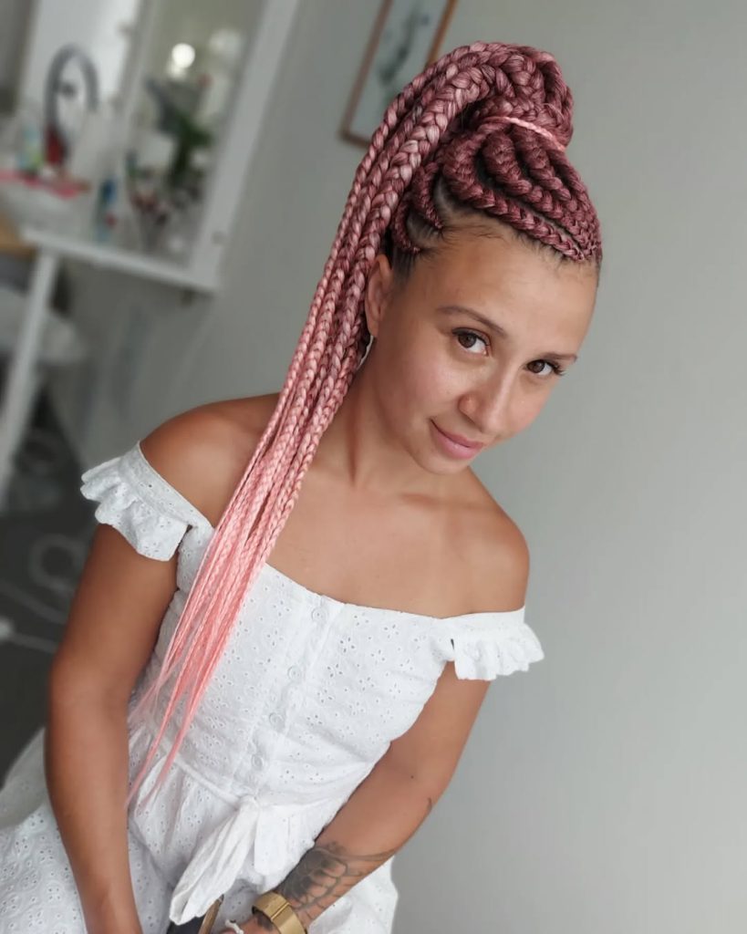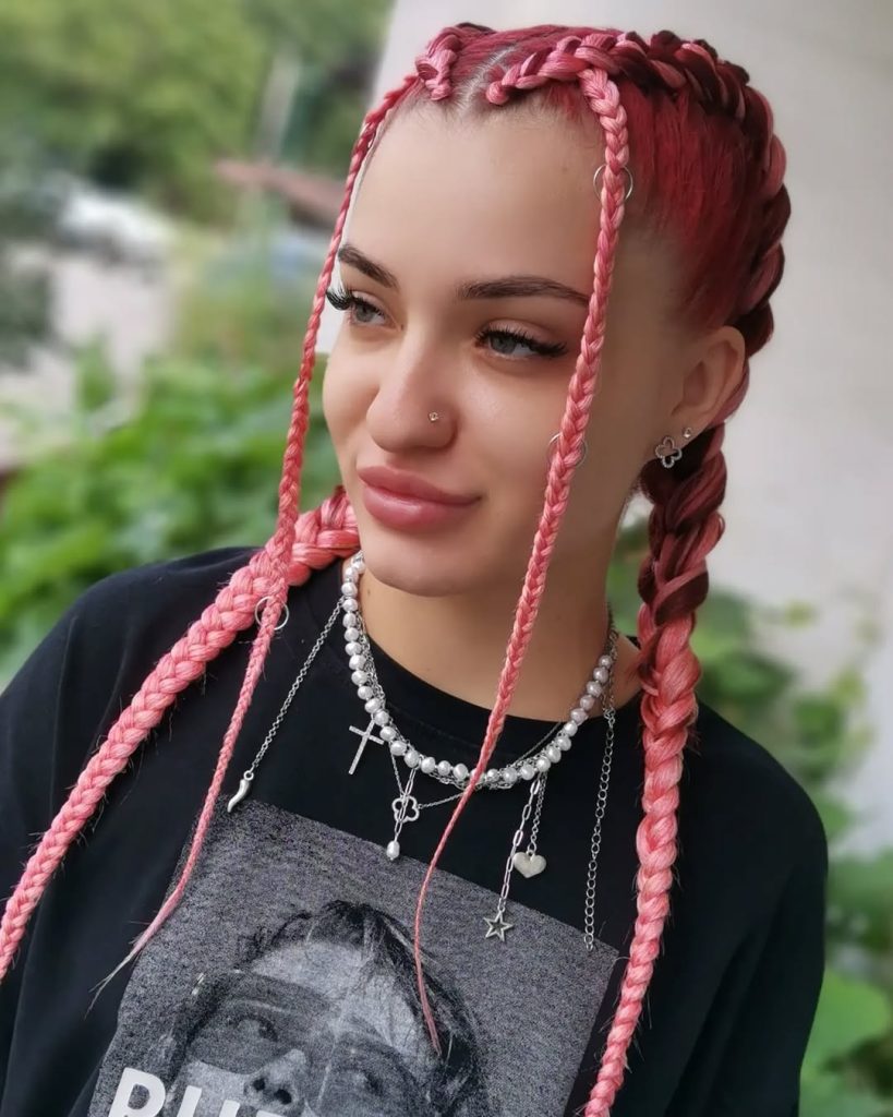 This look feels relaxed, expressive, and full of personality. The soft pink braids bring warmth and individuality, while the face-framing pieces soften the overall impression. It’s playful without being loud, making it easy to wear even if you’re new to color.
