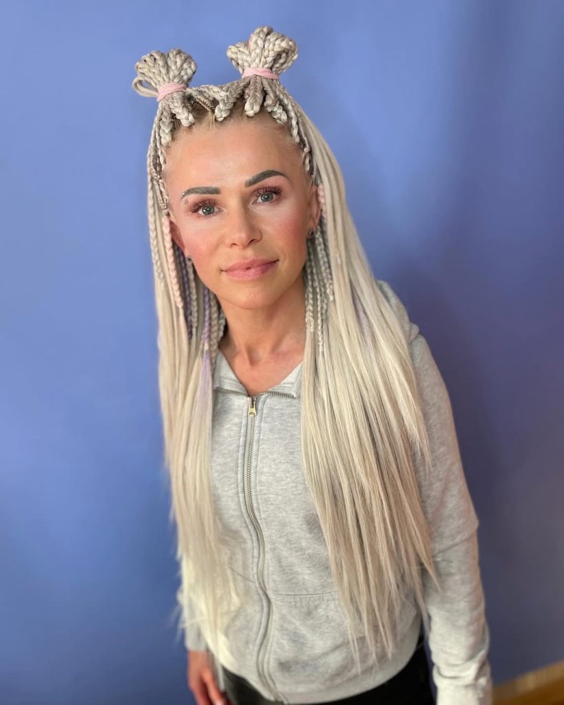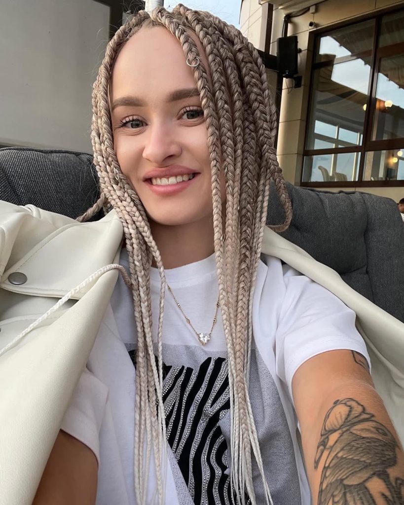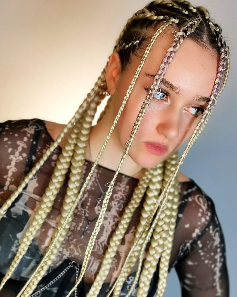 This hairstyle feels fresh, clean, and effortlessly stylish. The light blonde braids frame the face softly, creating a look that feels approachable and modern. There’s an effortless confidence here, the kind that doesn’t rely on heavy styling or constant adjustment.