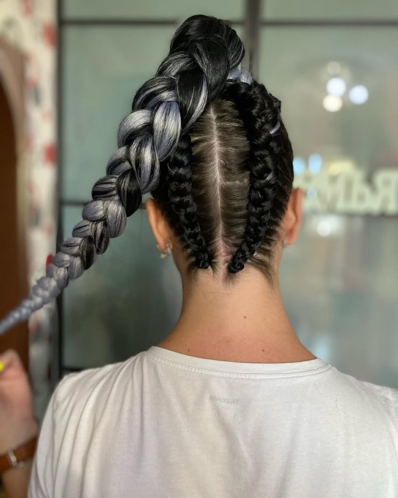 18. Dual Braided Ponytail with Bold Contrast