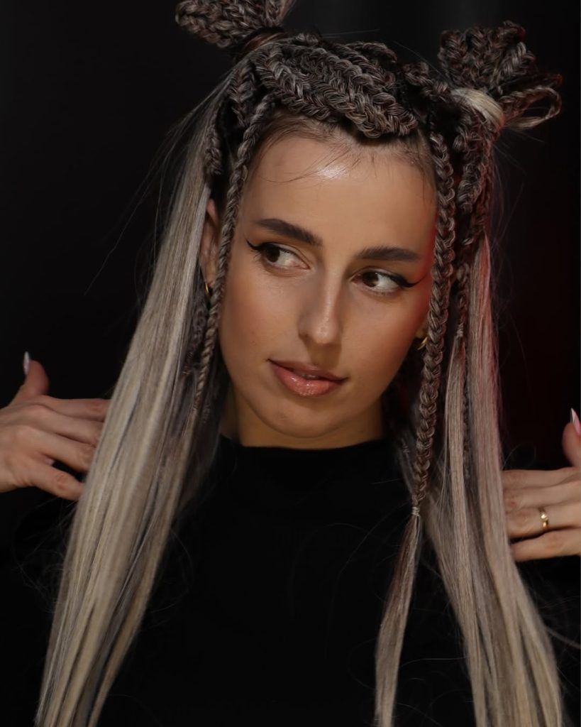 This hairstyle feels playful, confident, and surprisingly empowering. The double-braided buns on top add a fun, youthful twist, while the long, flowing braids bring balance and elegance. It’s a look that instantly brightens your mood and shows personality without feeling overdone or costume-like.