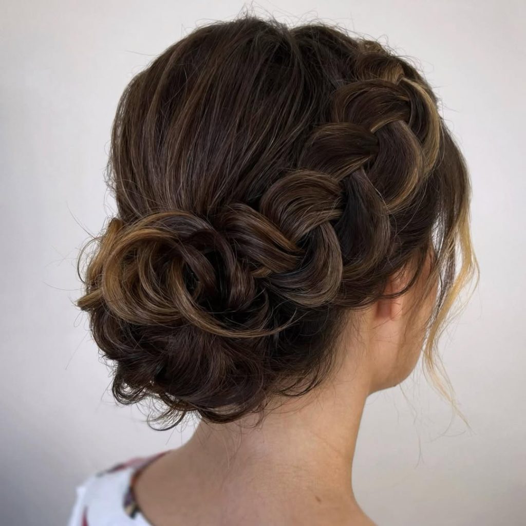 It’s a flexible hairstyle appropriate for weddings and other formal happenings and even everyday use. Suitable for long and medium lengths with straight and subtly wavy textures. The braid makes it practical and keeps the bun looking polished. The perfect finish for it is nice, understated makeup and minimalist earrings.