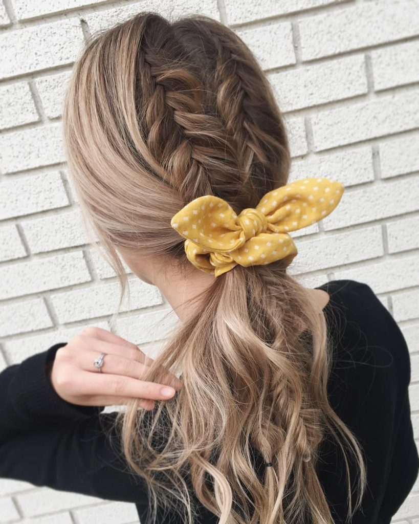 28. Braided Half-Up Style with Scrunchie Accent