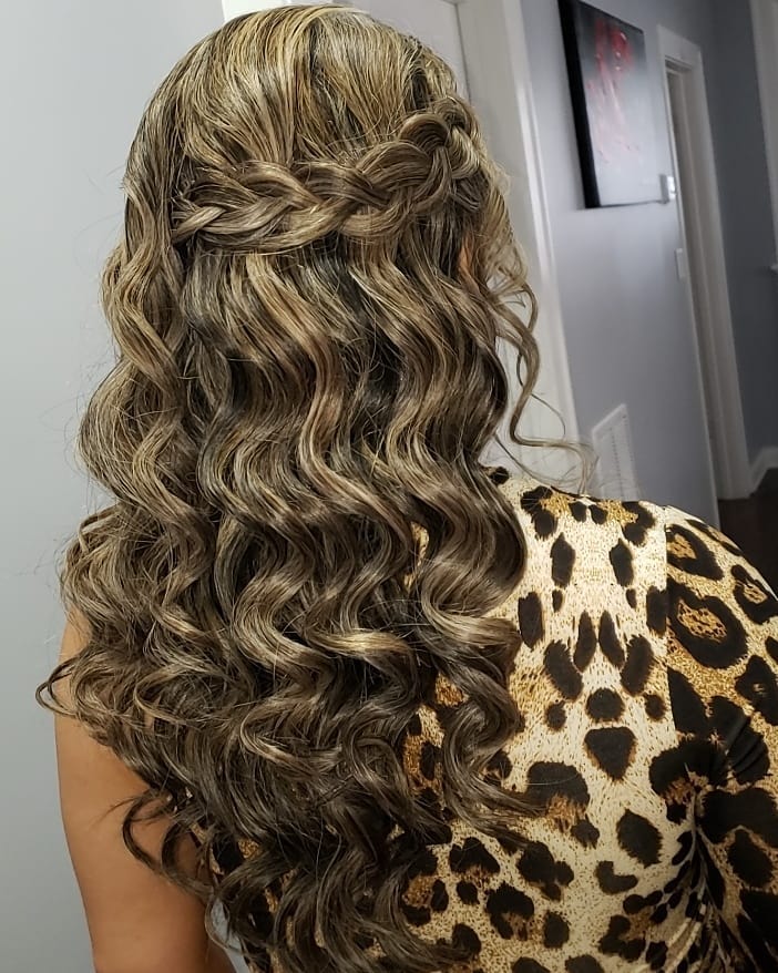 27. Half-Up Braided Crown with Loose Curls