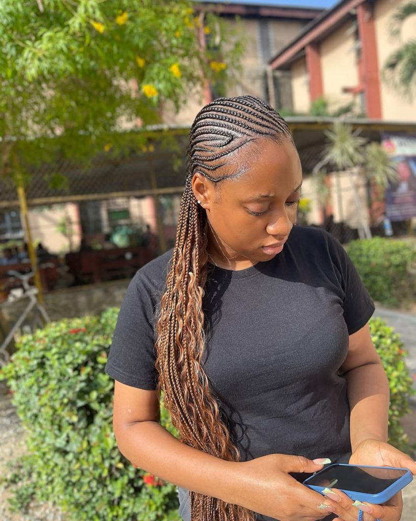 There’s a quiet strength in this style. The braids are neat, uniform, and beautifully structured, flowing down the back with purpose and grace. It feels timeless and grounded, the kind of hairstyle that doesn’t chase trends but always feels relevant. This style is a look that carries confidence without needing embellishment.