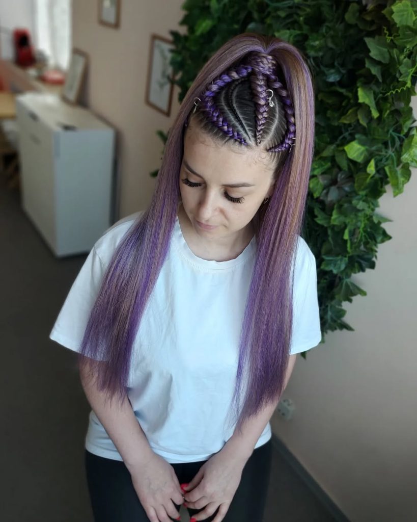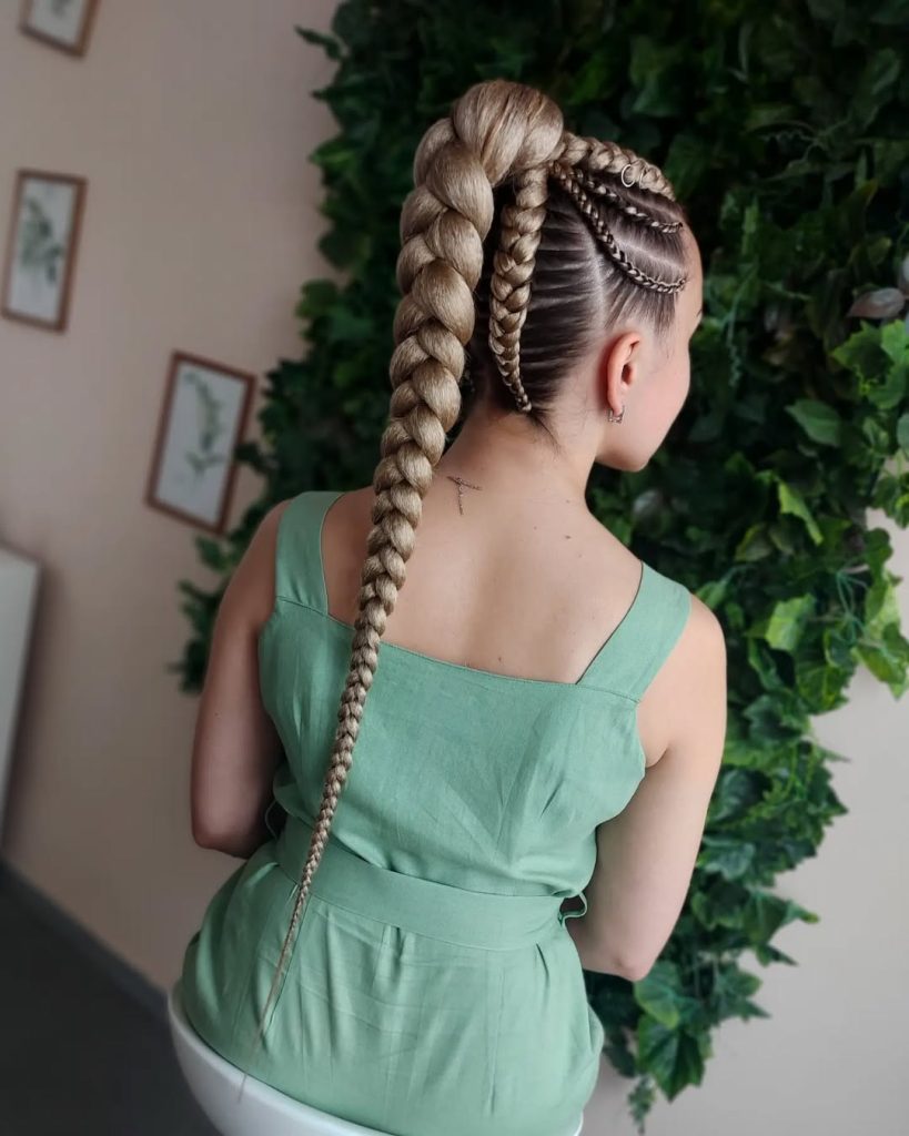 This style works best for long hair or added length and is ideal if you enjoy expressive looks with structure. It’s easy to adapt for casual days or creative outings, and the secure braided base keeps everything in place. Despite its bold appearance, it remains straightforward to maintain with simple nightly care.