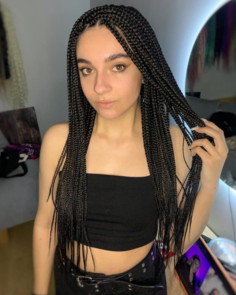 These braids make a statement without saying a word. The length, the color, and the clean parting give off a confident, slightly edgy energy while still feeling wearable. It’s a look that says you’re comfortable standing out and embracing a fresh chapter of style.