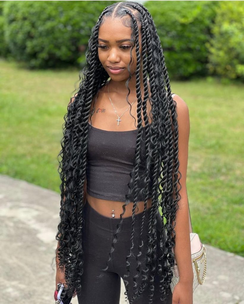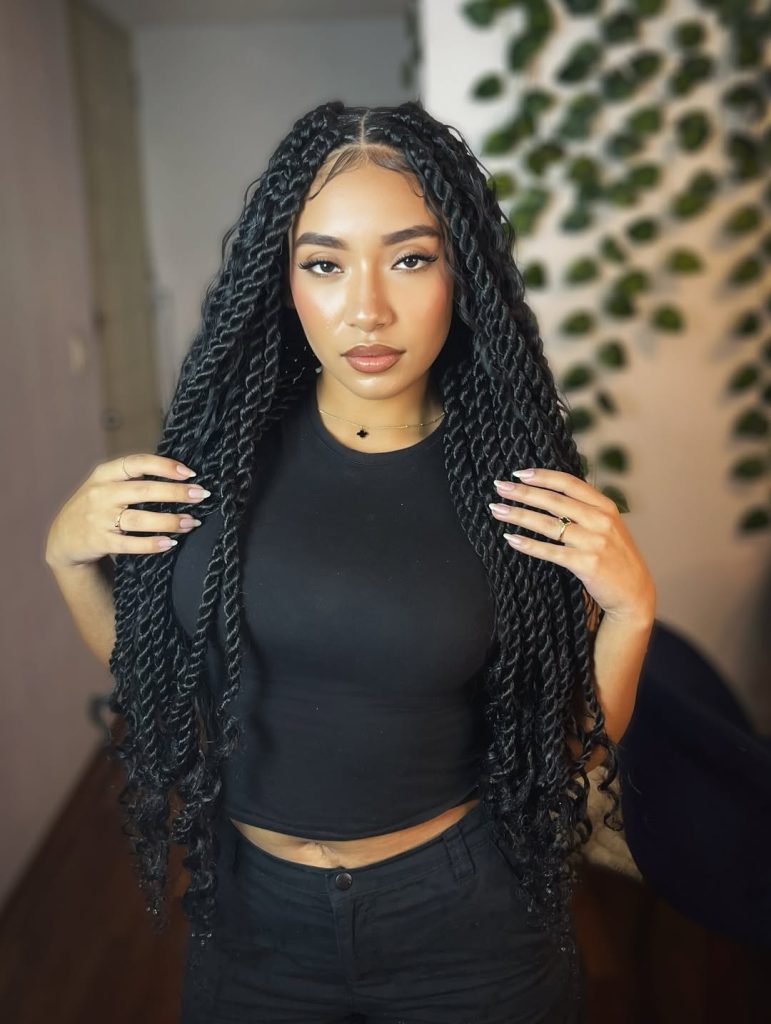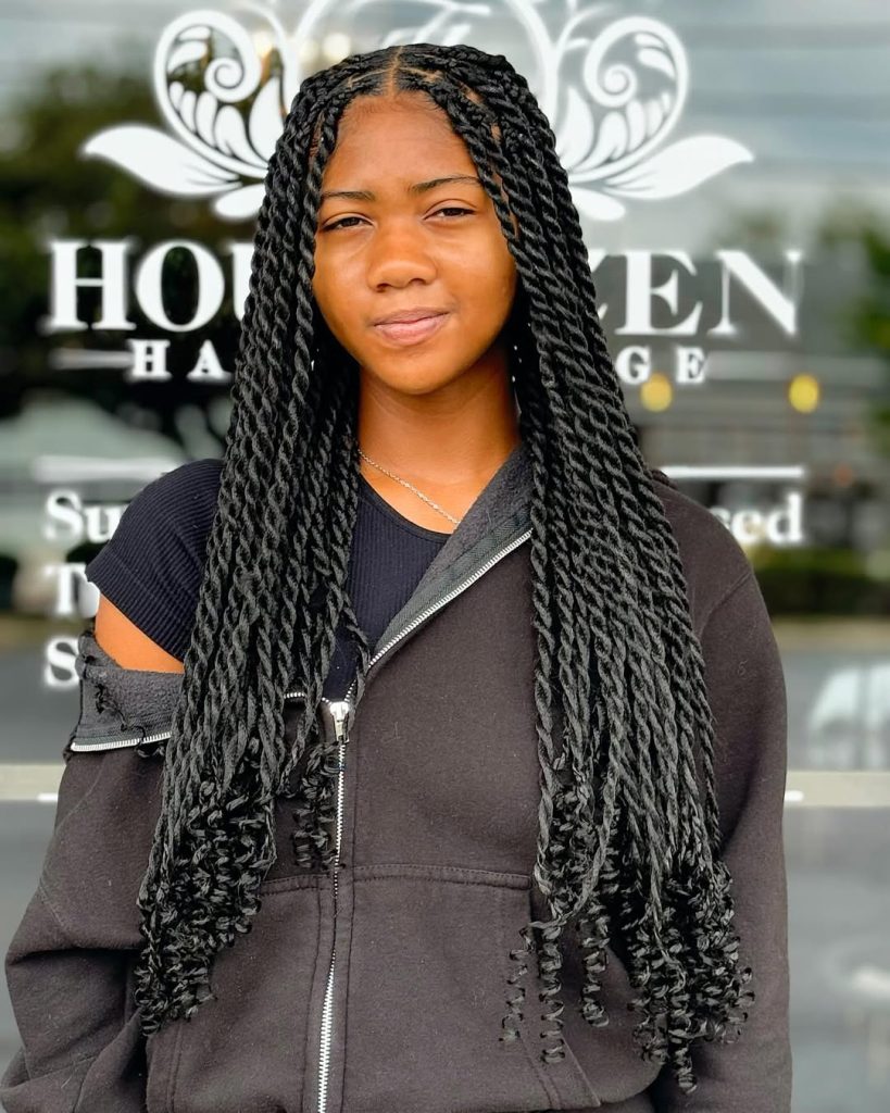 This look is ideal for women who want long hair with a softer finish. It works well for medium to thick textures and keeps its shape beautifully with minimal styling. The curled ends prevent the twists from feeling heavy, making it a comfortable and flattering option for everyday wear.